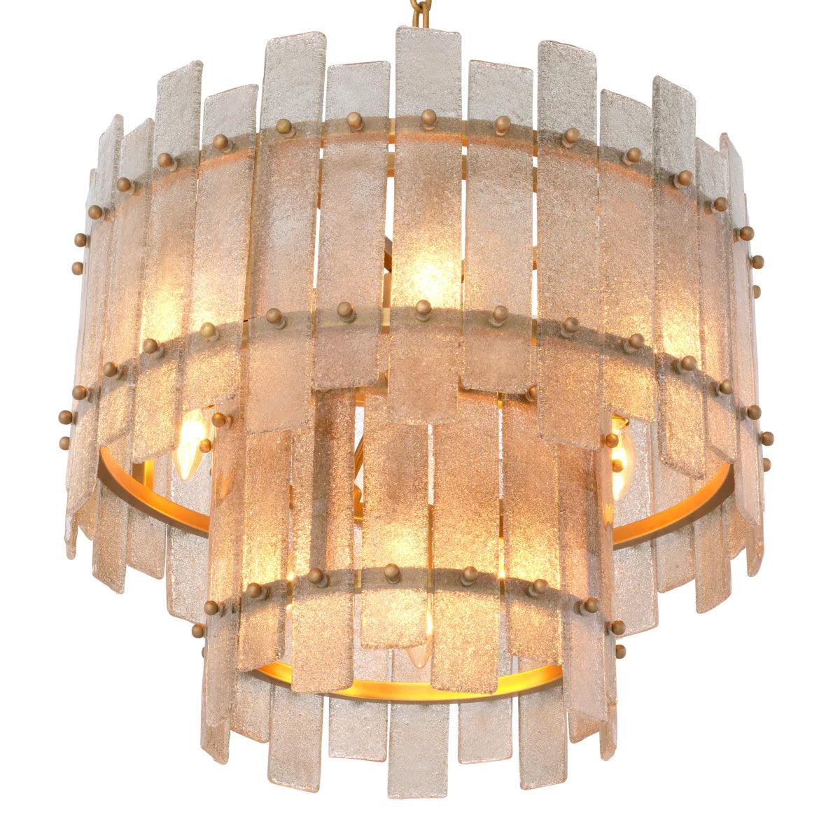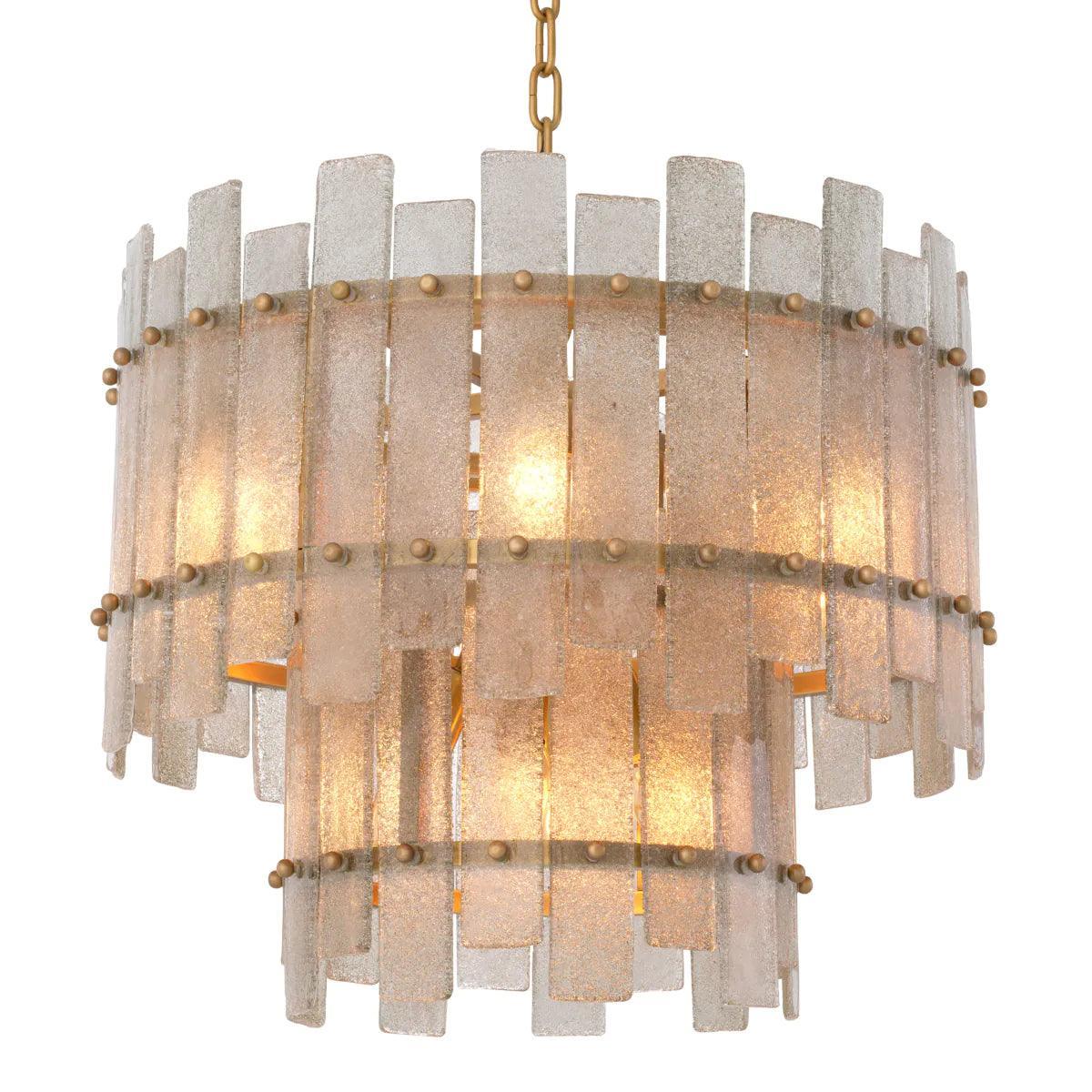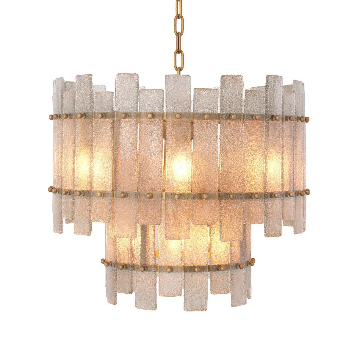 A Caprera csillár modern csavart mutat be a klasszikus dizájnon. Antik sárgarézzel készült, és tíz darab izzót tartalmaz. 57cm-es átmérőjű kör formában, kétszintes kivitelben kapható. A kézzel fújt füstös világosszürke üveglapok érdesített hátlappal megdöbbentő hatást keltenek, amikor a lámpa világít.