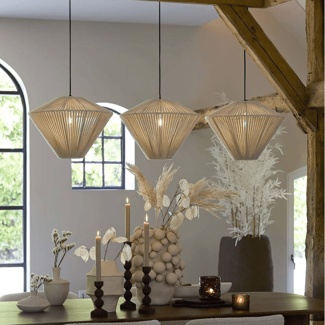 A Felida függőlámpa mind formailag mind színében és anyagában tökéletesen megfelel a mai divatirányzatoknak. Letisztult bézs színe lehetővé teszi, hogy könnyedén beilleszthesd otthonodba. Pamutkötél lámabúrája megszűri a fényt. Kompatibilis 3 darab E27 foglalatú izzóval, ami nem tartozék.
