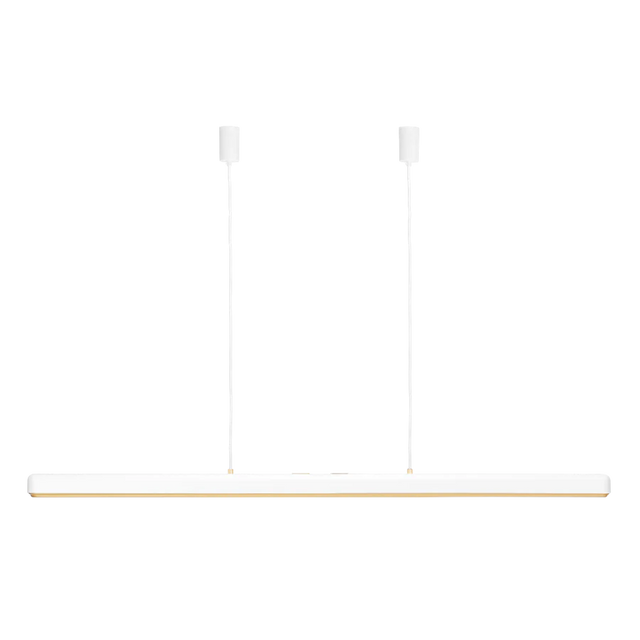 A Hazel Branch a természet formáinak találkozása egy funkcionális és elegáns dizájnban. Vékony formája és a dizájn lebegő megjelenése miatt a Hazel Branch tökéletesen alkalmas az étkezőasztal, a konyhapult fölé vagy egy tárgyalóterembe függesztve, praktikus, mégis finom világítási megoldást kínálva. A Hazel Branch beépített 40W LED panellel rendelkezik, amely lágy fehér diffúzorral biztosítja a vakításmentes fényt. A lámpa tetején található két diszkrét gomb lehetővé teszi, hogy mind a fényhőmérsékletet, mind az intenzitást a te egyedi igényeidhez vagy a kívánt hangulathoz igazítsd. A gombok és az acél vagy sárgaréz színű panel fényvisszaverő tulajdonságaival érdekes fényjátékokat hoz létre. A Hazel Branch fehér színben, fehér textilzsinórral vagy fekete színben, fekete textilzsinórral, 100 vagy 150 cm-es méretekben kapható.