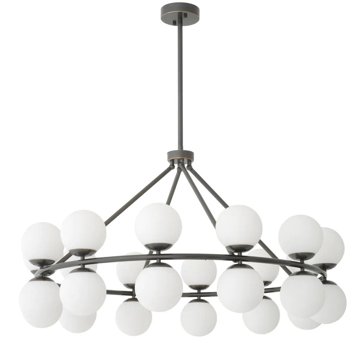 A középkori világítótestekre emlékeztető és egy csipetnyi retro stílust idéző modern Hutchinson csillár körkörös kerettel rendelkezik, és tizenkét darab fehér üveggömb búrával mindkét oldalán. Kiváló világítási megoldás, amely mind a lakóépületek, mind a vendéglátóipari dekorációk számára alkalmas. Bronz és réz színű bevonattal kapható.
