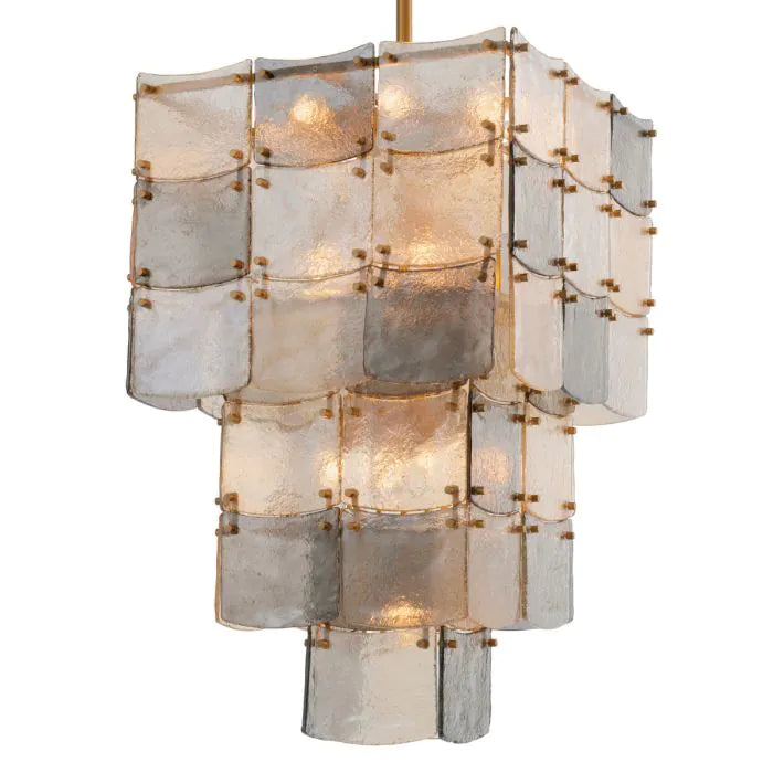 Merülj el a luxusban a Laurent csillár három rétegével, amelyek füstüvegből és pezsgő színű üvegből állnak. Az antik sárgaréz kivitel fokozza a kifinomult aurát, meleg, pazar fényt árasztva. Ez az elegáns lámpatest minden elemében a kifinomult stílusról tanúskodik, tökéletes azok számára, akik művészi darabokat keresnek a magas színvonalú életterükhöz. 17 db E14-es izzó szükséges hozzá.