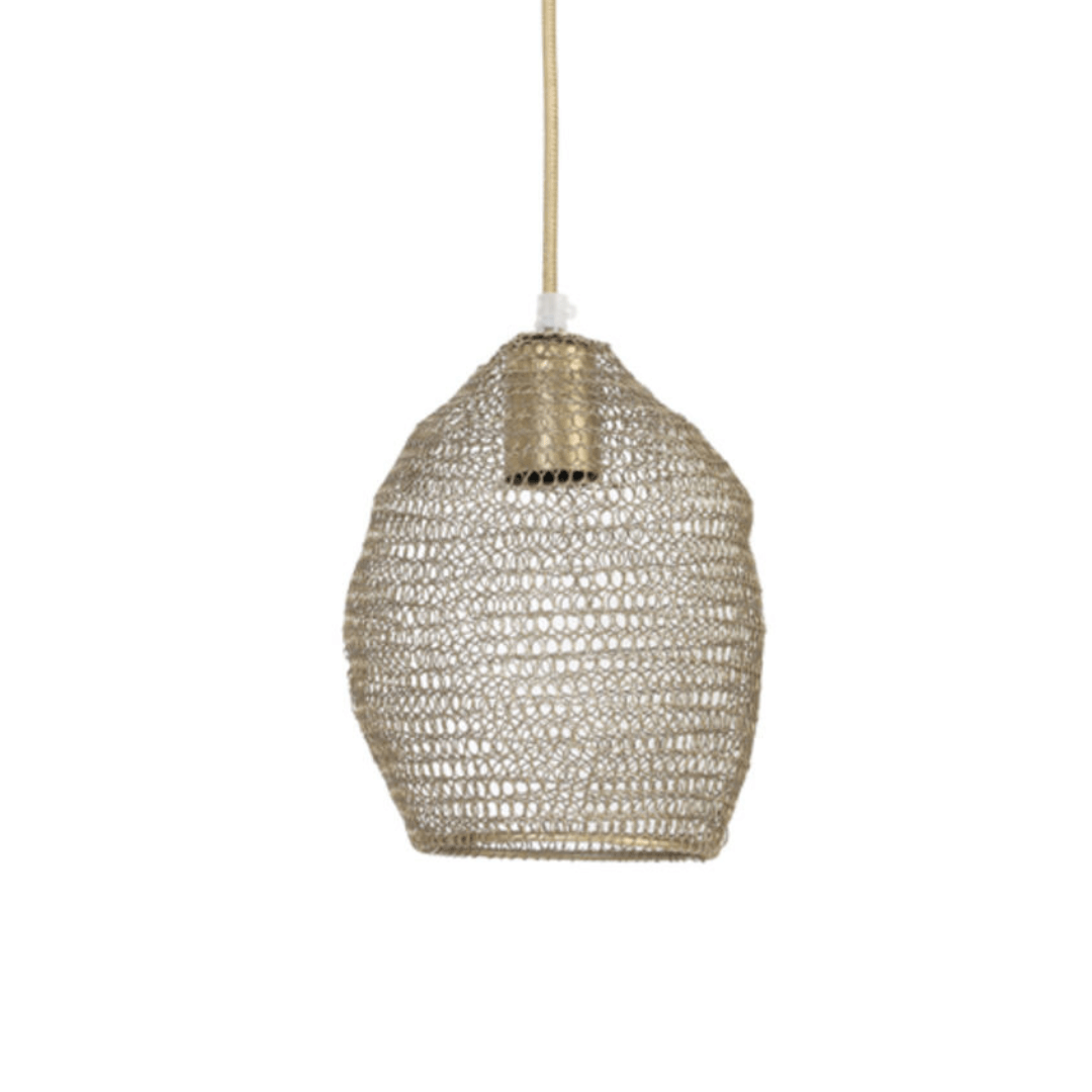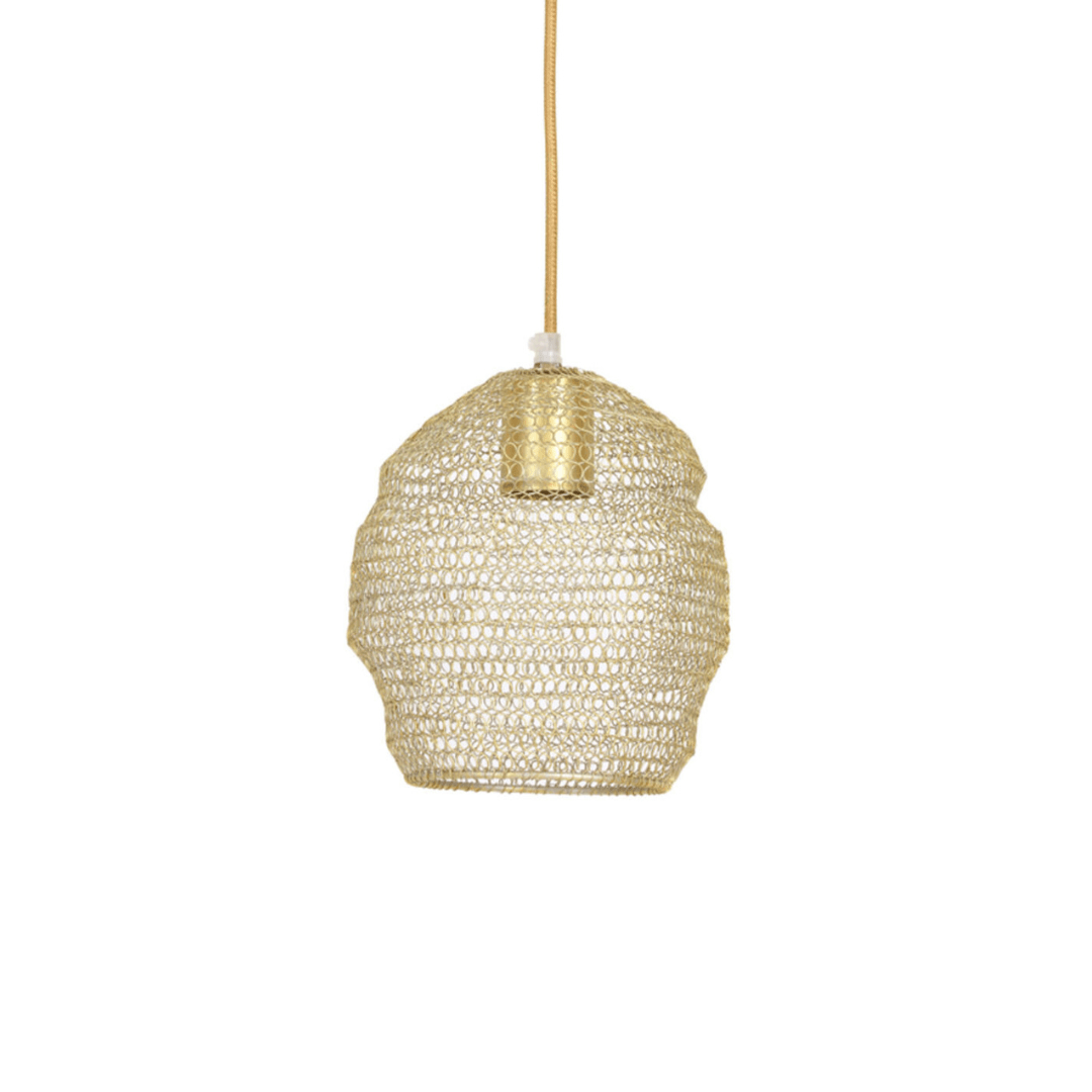 A Nola fém függőlámpa vékony fém szálakból fonott búrájával és arany színű lámpaszerelvényével vonzza magára a figyelmet. Aprólékos kidolgozása igazáb dekoratívvá teszi. Átmérője: 18 cm. Kompatibilis 1 darab E27 foglalatú, max. 40W izzóval, ami nem tartozék.