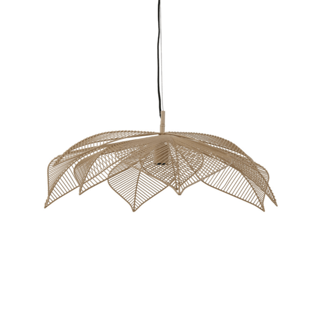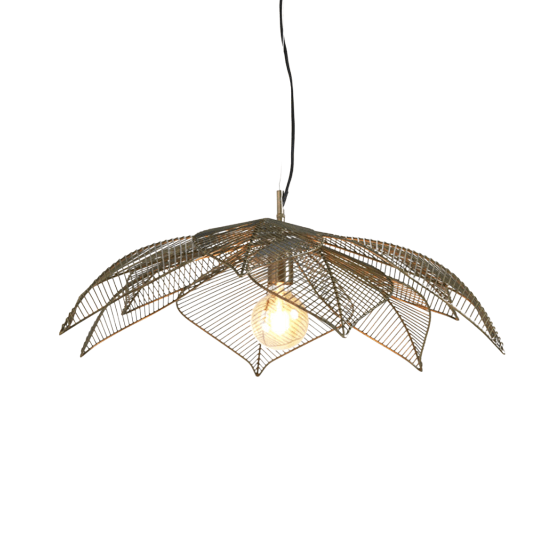 A Pavas fém függőlámpát elegáns, virágot idéző formája teszi egyedülállóvá. Igazi éke lehet otthonodnak bézs színével és vékony fém szálakból kialakított formáival. Átmérője: 72 cm. Elérhető különböző kivitelekben. Kompatibilis 1 darab E27 foglalatú izzóval, ami nem tartozék.