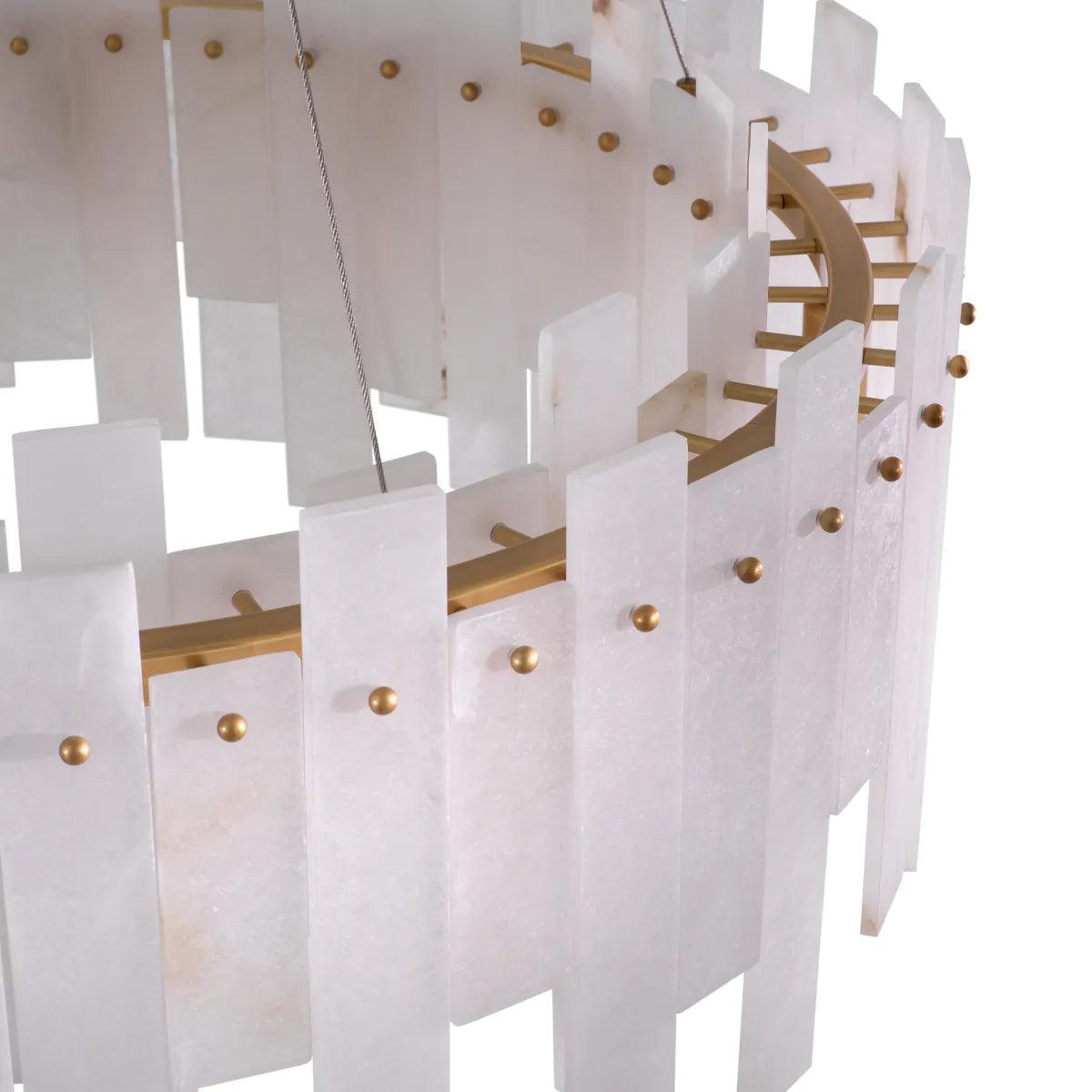 A Pizzorni csillár a kifinomult elegancia remek megtestesítője. Csillogó antik sárgaréz felületével és elbűvölő alabástrom gipsz lapjaival minden részlet a legkiválóbb kivitelezést árasztja, és a dizájnt az elegancia csúcsára emeli. Legyen a Pizzorni csillár a dekorációd megkoronázása, amely tükrözi kifogástalan ízlésedet. Belsejében 12 db izzónak megfelelő hely van.