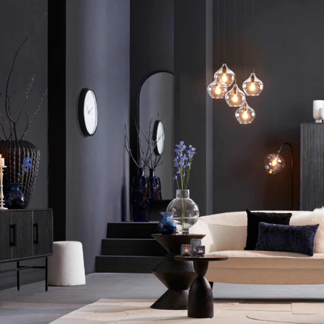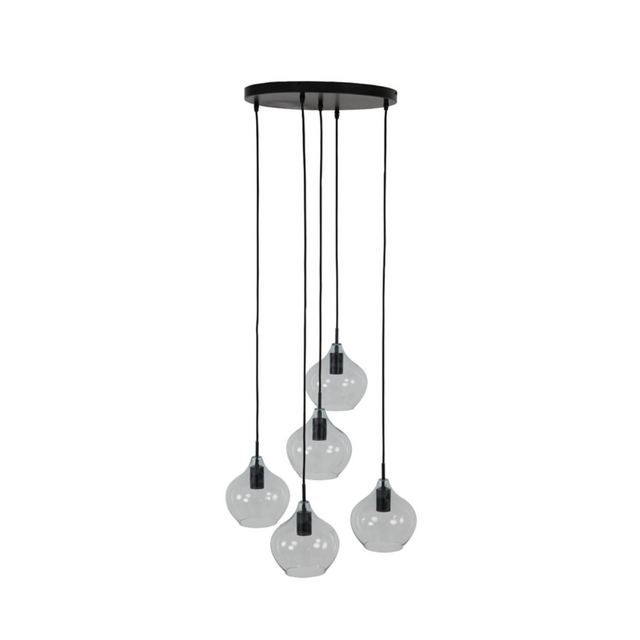 Rakel üveg függőlámpa 5 izzó - Fekete utólagos megrendelésre kerül, és azonnal kiszállítjuk, amint újra raktáron van.