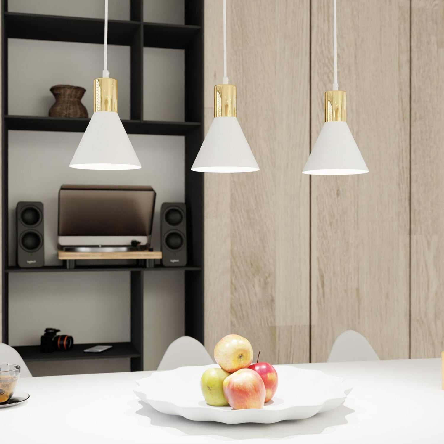 A Rosa sorozat a loft stílusú függőlámpák modern kollekciója. Minimalista kialakítása tökéletesen illeszkedik a legújabb trendekhez. A kúp alakú lámpaernyők hűvös fém anyagának kombinációja az arany fényével vonzza a figyelmet. A Rosa sorozat egy fantasztikus dekorációs elem is, amely tökéletesen megvilágítja a belső teret. 1, 3, 4 vagy 5 fényforrásos változatban kapható, fekete vagy fehér színben. Az izzó nem tartozék.