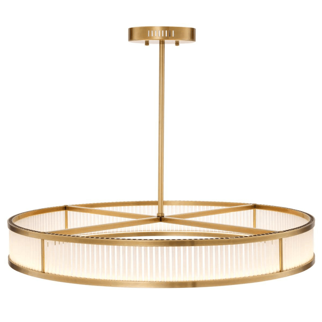 A Thibaud egy csodálatos, és minimalista függőlámpa, amely igazán jól működik központi világításként nappaliban, étkezőben és hálószobában is. Dob alakú búrája antik bronz vagy arany felülettel rendelkezik, amelyet matt üvegrudak díszítenek. Minden Thibaud-hoz 3 különböző hosszúságú rúd tartozik (10 cm, 30 cm és 50 cm). Ezeket egyenként vagy kombinálva is használhatjuk a kívánt függesztési hossz létrehozásához. Kétféle méretben kapható, ez a darab a nagyobb, 90cm-es átmérővel.