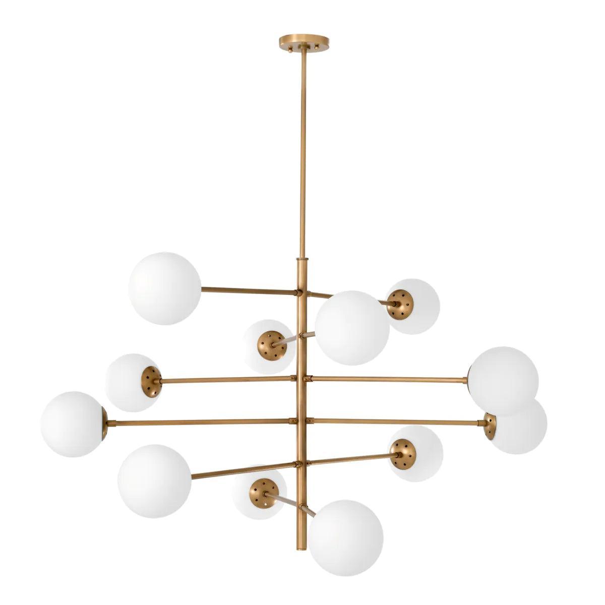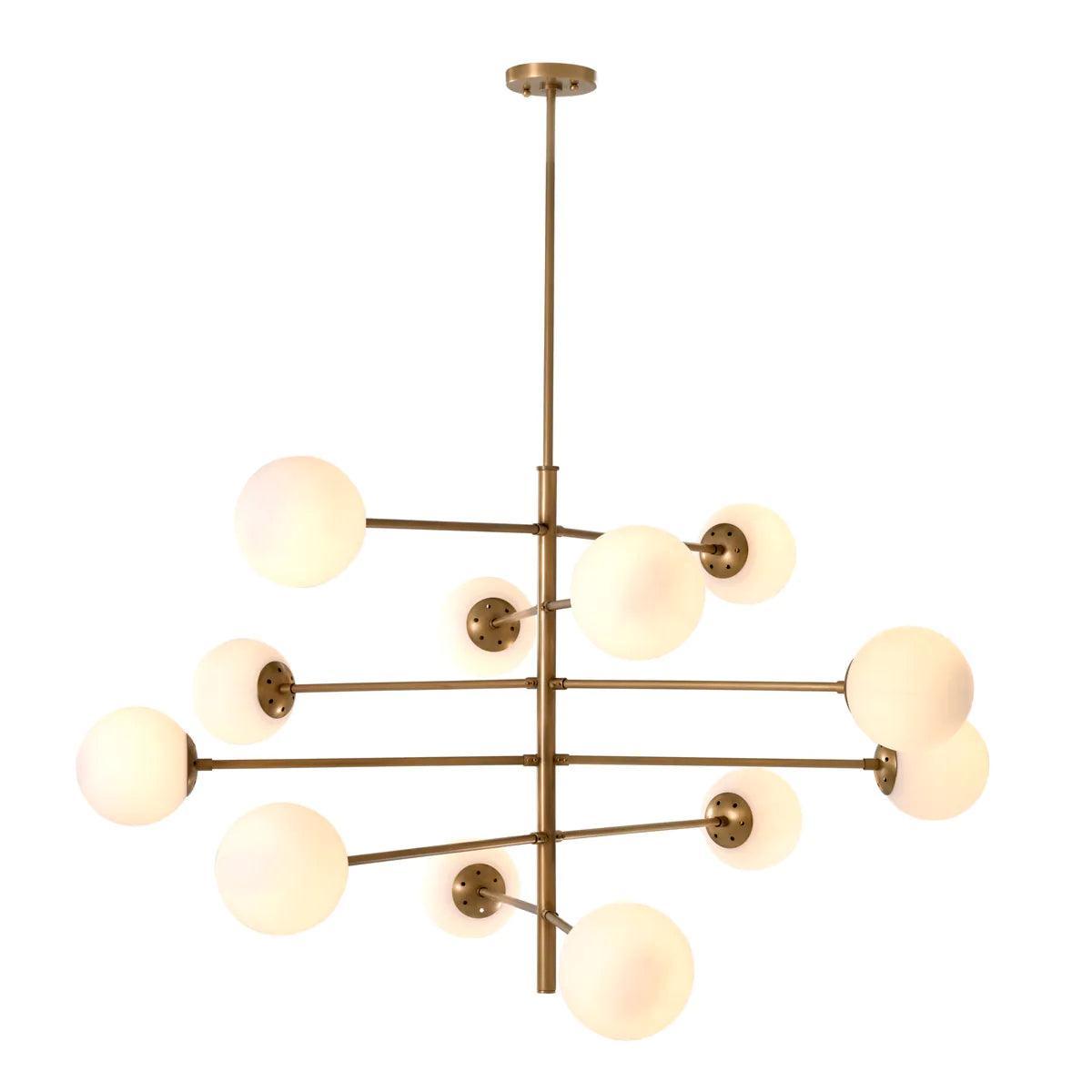 Hozz létre retro, ugyanakkor elegáns fókuszpontot életteredbe a Tortora csillárral. A századközepi modern dizájner világításnak ez az aszimmetrikus értelmezése azonnal feldobja szobádat. Antik sárgaréz bevonattal és tizenkét darab fehér üveggömbbel rendelkezik.