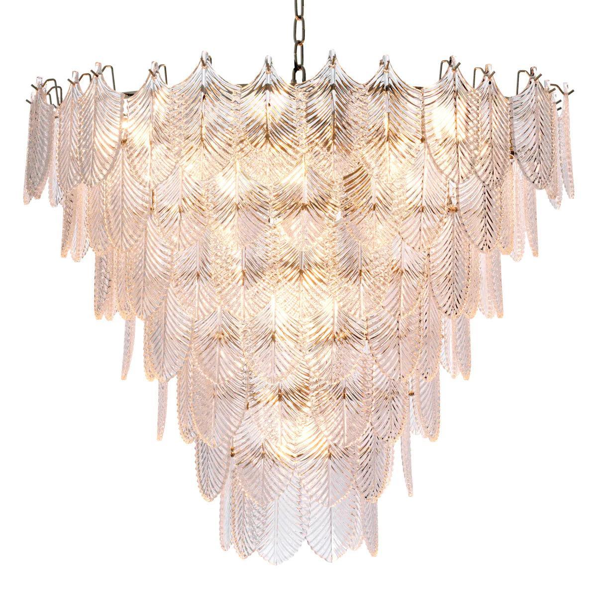 Frissítsd meglévő belső tereidet a Verbier csillárral, amely igazi fénypont lehet otthonodban, és bármely modern vagy klasszikus lakberendezési stílusba beilleszthető. Ez a kúpos függőlámpa világos szálcsiszolt sárgaréz felülettel és üveg díszítéssel nem csak a helyiség megvilágítását szolgálja, hanem egyben műalkotás is. Két különböző méretben, és kétféle színben kapható: füstös világosszürke, és átlátszó. Belsejében 16 db izzónak megfelelő hely található.