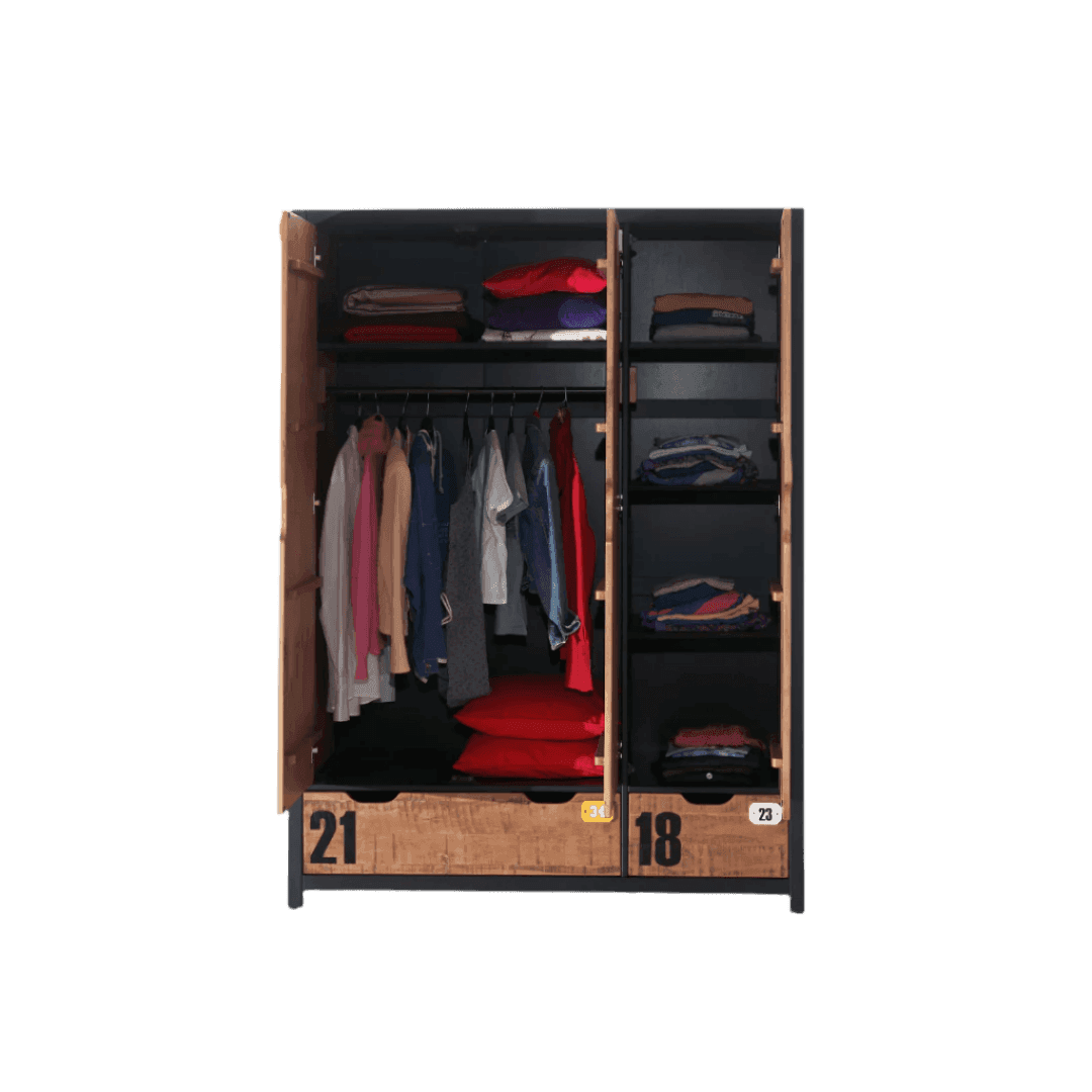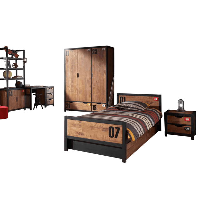 Az Alex16 gyerek bútor szett tömör fenyő anyaggal és fekete fém vázakkal rendelkezik. A bútorokon található élénk színű számok teszik trendivé az Alex kollekciót. A szett tartalmaz egy 90x200cm-es ágyat (ágyrács nélkül), egy kihúzható, kerekes 190x93cm-es ágyneműtartót, egy 50x45x45cm-es két fiókos éjjeliszekrényt, egy 147x55x200cm-es három ajtós szekrényt, egy 80x40x200cm-es polcot, és egy 130x60x75cm-es íróasztalt.
