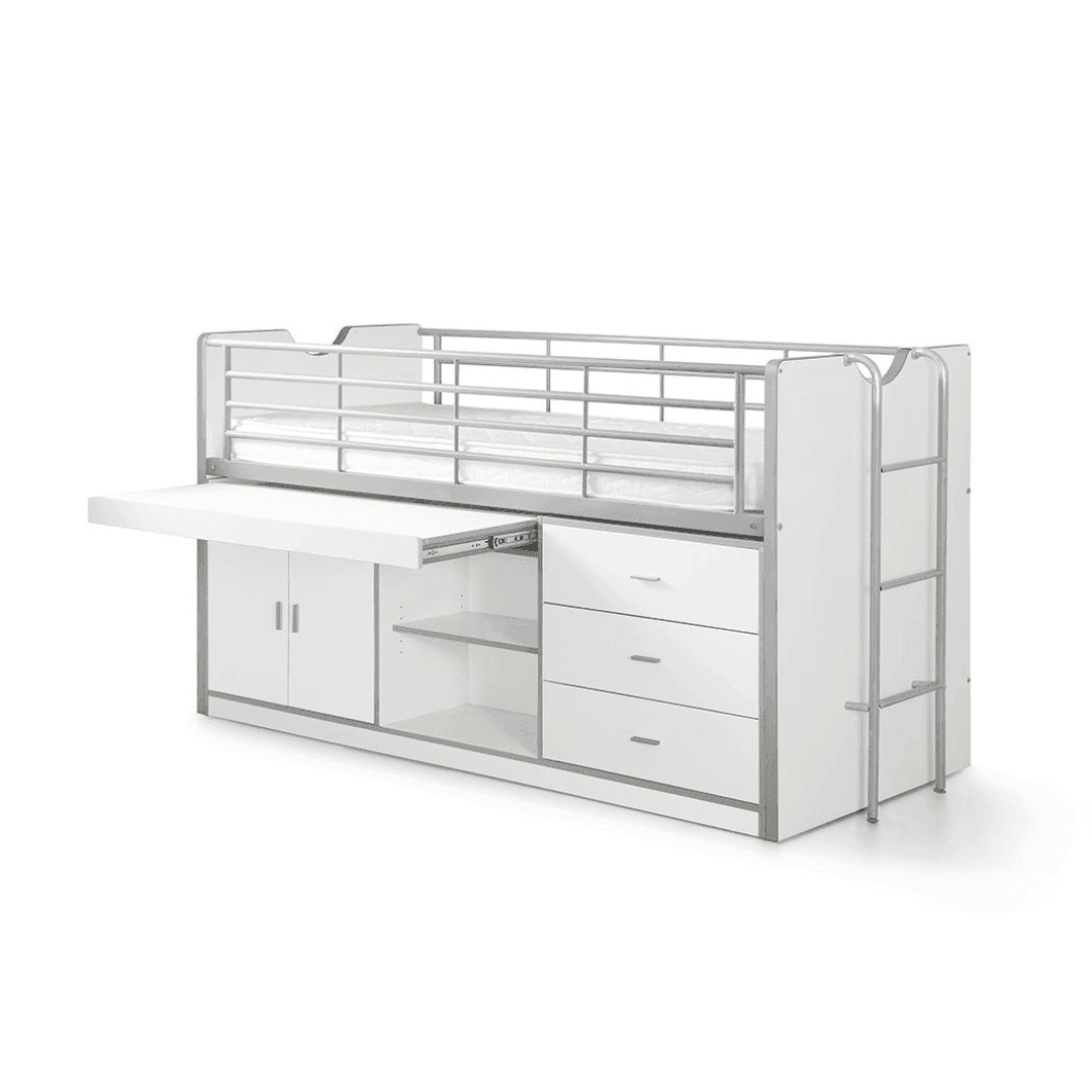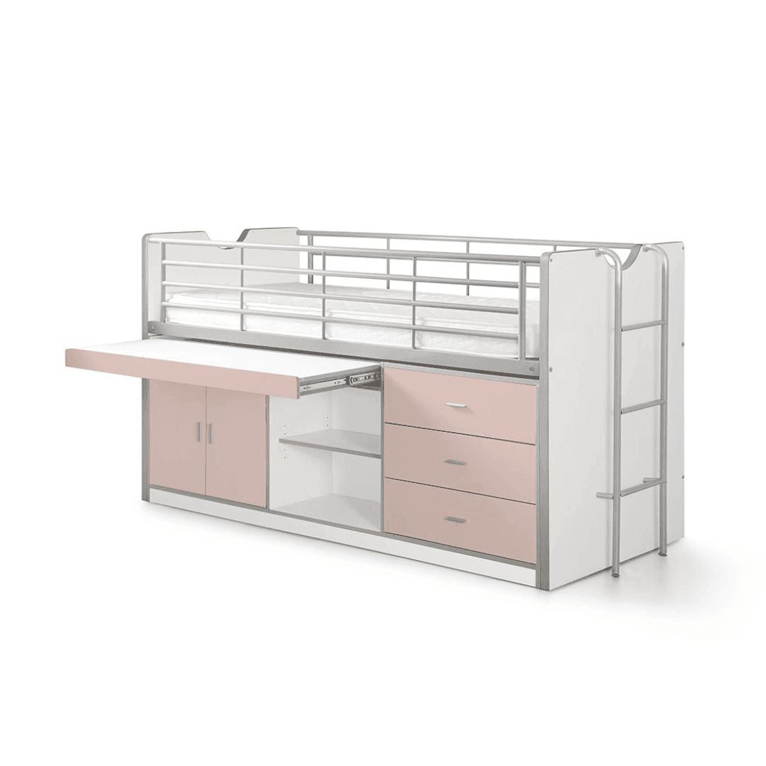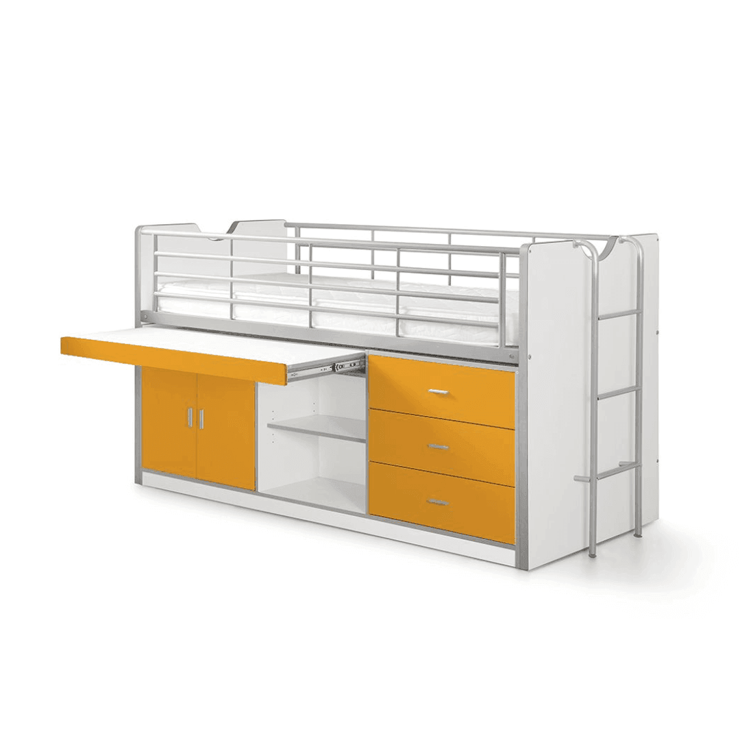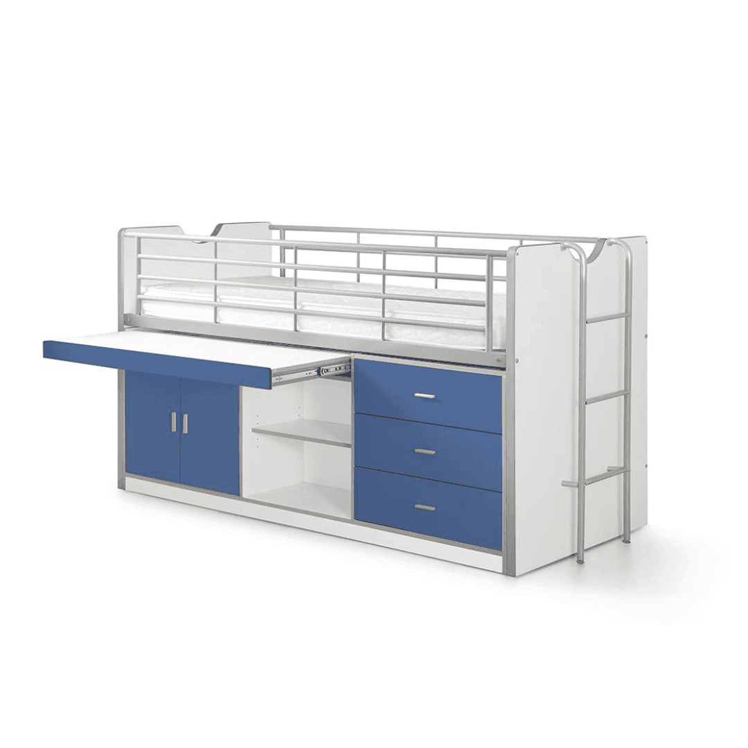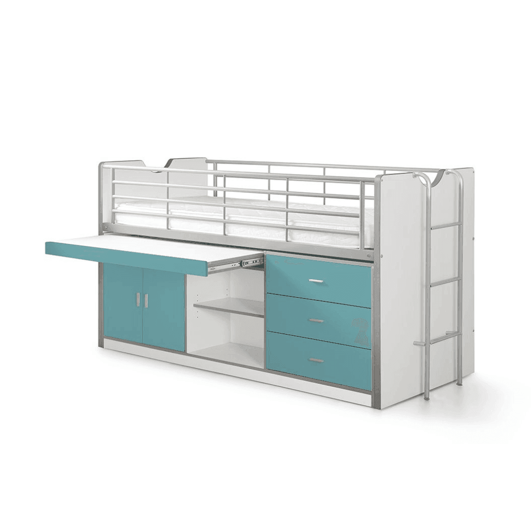 A Bonny95 gyerek bútor, egy igazi innováció a kisebb méretű gyerekszobák számára. Helytakarékos, és nagyon praktikus megoldás lehet bármely lakótérben. Egy darab ágy található benne (90x200cm) a felső részen, amihez biztonsági rács, és fém létra is tartozik. Az alsó részén a bútornak van egy kihúzható asztal, két polc, három fiók, illetve egy két ajtós szekrény is, így mindig rendben tartható a szoba. A Bonny 95 hétféle színben kapható, melyek között van élénk, vidám, elegáns és kifinomult is. A matrac nem tartozék.