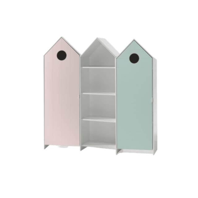 Ismerd meg a Casami 405 gyerek bútor szettet, mely két darab 1 ajtós szekrényt, és egy polcrendszert tartalmaz. A három termék egyforma méretekben készült (57.6x37x171.5cm), így bőséges helyet biztosít a ruháknak, a játékoknak, és a könyveknek is. Kellemes, otthonos hangulatot varázsol minden gyerekszobába. Külön külön is használhatod őket. A polc fehér, a szekrények pedig világoszöld, és rózsaszín.