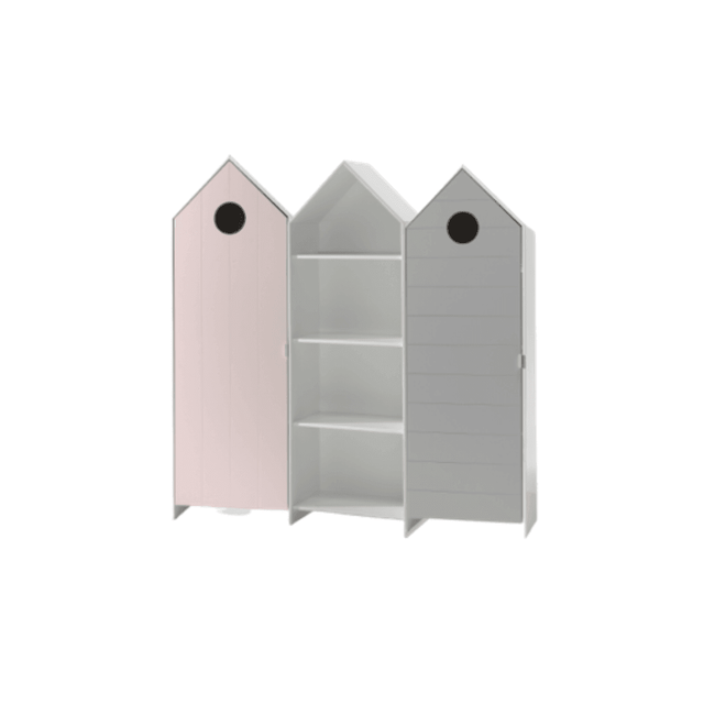 Fedezd fel a Casami 406 gyerek bútor szettet, mely két darab 1 ajtós szekrényt, és egy polcrendszert tartalmaz. A három termék egyforma méretekben készült (57.6x37x171.5cm), így bőséges helyet biztosít a ruháknak, a játékoknak, és a könyveknek is. Kellemes, otthonos hangulatot varázsol minden gyerekszobába. A polc fehér, a szekrények pedig világosszürke, és rózsaszín.