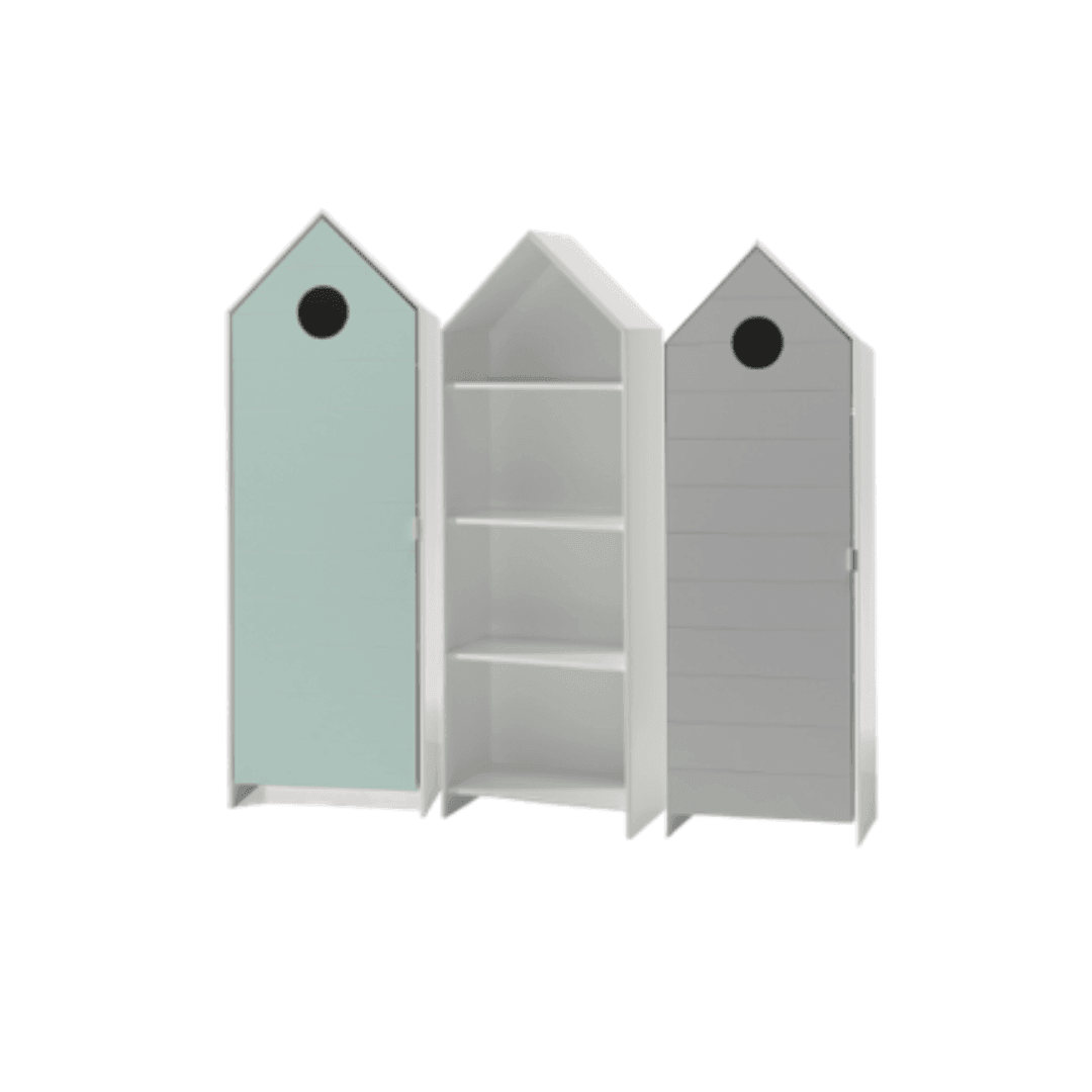 Fedezd fel a Casami 407 gyerek bútor szettet, mely két darab 1 ajtós szekrényt, és egy polcrendszert tartalmaz. A három termék egyforma méretekben készült (57.6x37x171.5cm), így bőséges helyet biztosít a ruháknak, a játékoknak, és a könyveknek is. Kellemes, otthonos hangulatot varázsol minden gyerekszobába. A polc fehér, a szekrények pedig világosszürke, és világoszöld.
