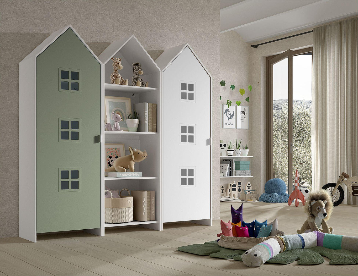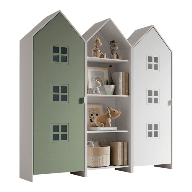 A Casami Bruges 410 gyerek bútor szett egy igazán ötletes, különleges kialakítású, és praktikus készlet, amely nem hiányozhat egy gyerek szobájából. A fából készült szett két szekrényt, és egy polcrendszert tartalmaz, melyek igény szerint rendezhetőek. Megjelenését a belga dizájnnak köszönheti, mely a hagyományos városi utcák házainak egymásutánját adja vissza. Külön külön is teheted a bútorokat, és variálhatod a stílusokat is, hiszen a Casami Bruges több különböző színkombinációban érhető el. A polc minden esetben fehér, a két szekrény pedig más és más színű.