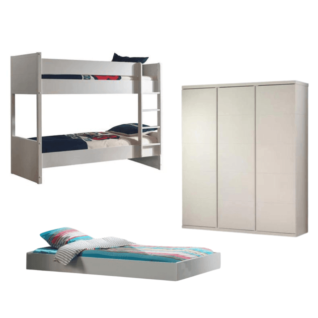 A Lara CO06 egy elegáns, és minimalista dizájnnal rendelkező gyerek bútor szett, amely fehérre lakkozott színe miatt bármely enteriőrbe könnyedén beleillik. Tartós és minőségi anyagainak, valamint megjelenésének köszönhetően időtálló berendezés marad. A készlet tartalmaz egy 210x97x174cm-es emeletes ágyat -létrával, ágyneműtartóval-, és egy 166x57x204.5cm-es 3 ajtós szekrényt, melyben két akasztós rész, és hat darab polc található. A matrac nem tartozék.