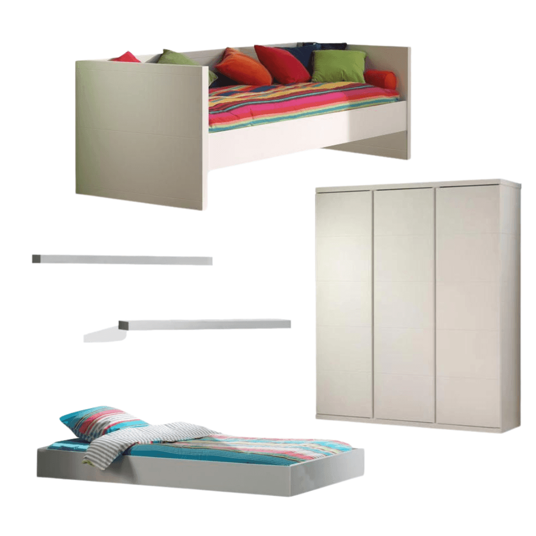 A Lara CO07 egy elegáns, és minimalista dizájnnal rendelkező gyerek bútor szett, amely fehérre lakkozott színe miatt bármely enteriőrbe könnyedén beleillik. Tartós és minőségi anyagainak, valamint megjelenésének köszönhetően időtálló berendezés marad. A készlet tartalmaz egy 210x96x76.5cm-es ágyat -ágyneműtartóval-, egy 166x57x204.5cm-es 3 ajtós szekrényt (akasztós résszel, polcokkal), és két darab 100x24cm-es falipolcot.