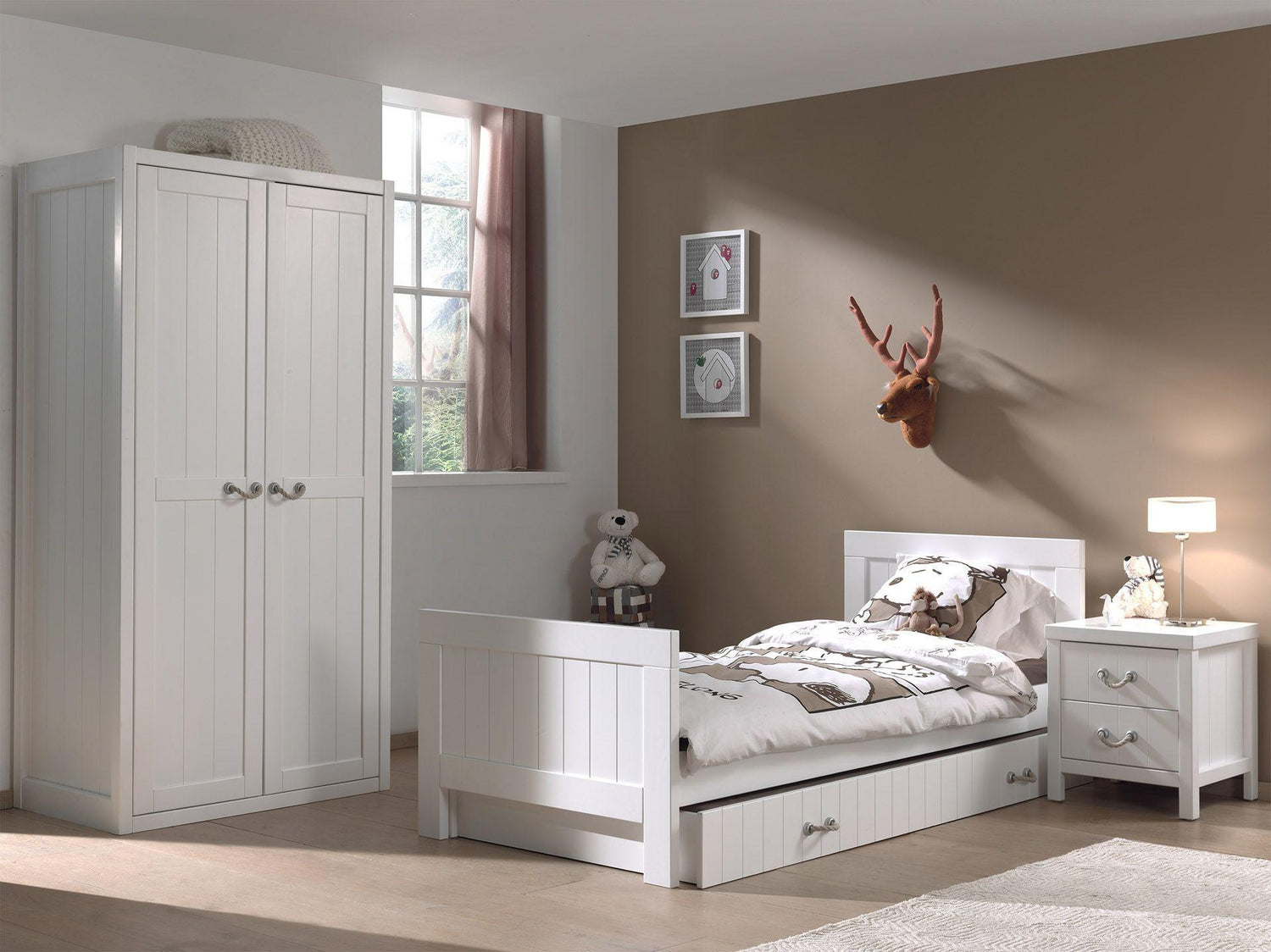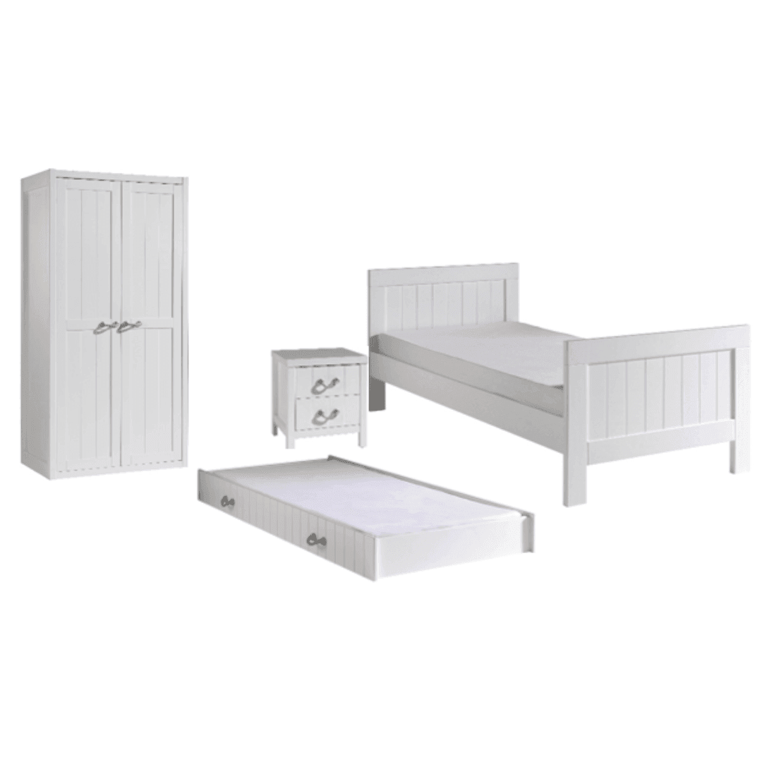 A Lewis CO56 gyerek vagy ifjúsági bútor szett egy igényes, modern megjelenésű, praktikus készlet, amelyben minden darab fehérre lakkozott anyaggal, és függőleges csikozású mintával van ellátva. Bármilyen stílusú belső térbe könnyen beleillik, és tartós anyagainak köszönhetően időtálló marad. A szett tartalmaz egy ágyat, ágyráccsal, melyhez 90x200cm-es matrac használható, egy kerekes, kihúzható ágyneműtartót, egy 50x46x55.5cm-es két fiókos éjjeliszekrényt, és egy 100x59x200cm-es két ajtós szekrényt. Az ágyhoz a matrac nem tartozék.
