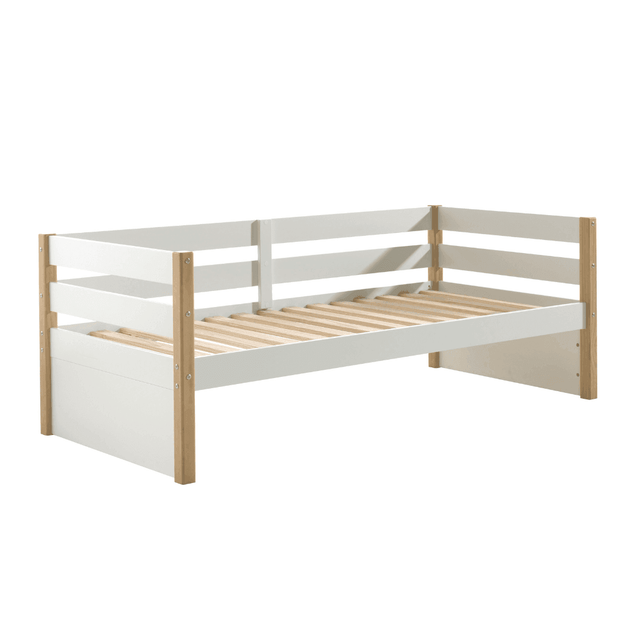A Margrit gyerekágy egy letisztult, skandináv dizájn elemekkel rendelkező bútordarab, amely három oldalán biztonsági ráccsal van körülvéve, így akár kanapénak is használható. Fehérre lakkozott anyagát natúr színű tömör fenyő részletek egészítik ki, így könnyedén illeszkedik bármilyen enteriőrbe. A hozzá tartozó ágyrács mérete 90x200cm.