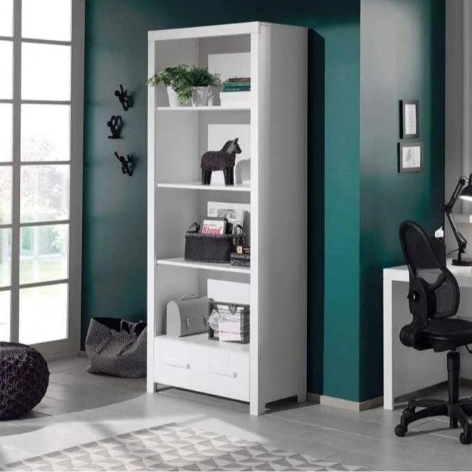 Az Erik gyerek polc egy kiváló választás a gyermekek szobájába. Modern és stílusos kialakításának köszönhetően bármilyen enteriőrbe könnyen beilleszthető. A termék négy tágas polccal rendelkezik, amelyek ideálisak könyvek, játékok és egyéb kellékek tárolására, emellett egy fiókja is van, amely biztosítja a plusz tárolóhelyet. A fiók praktikus Soft-Close rendszerrel van ellátva, így a záródás csendes és balesetmentes. Az anyag, amiből készült, tartós és strapabíró, így hosszú távon is megőrzi szépségét.