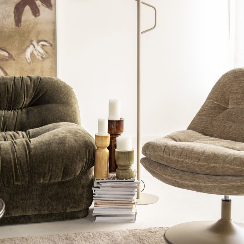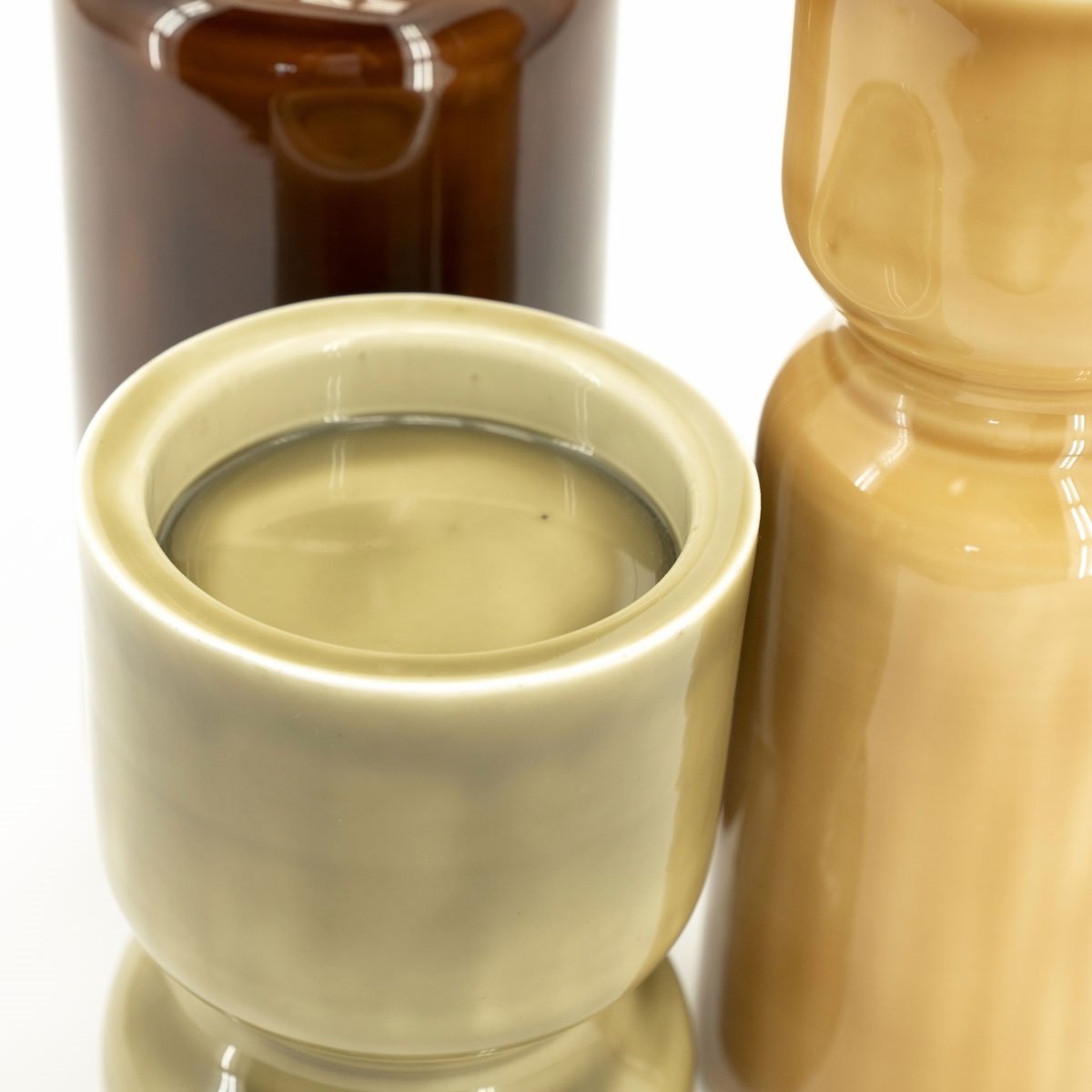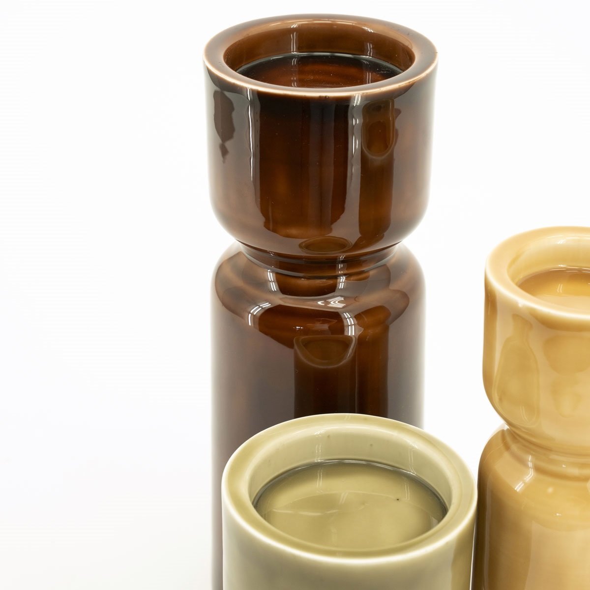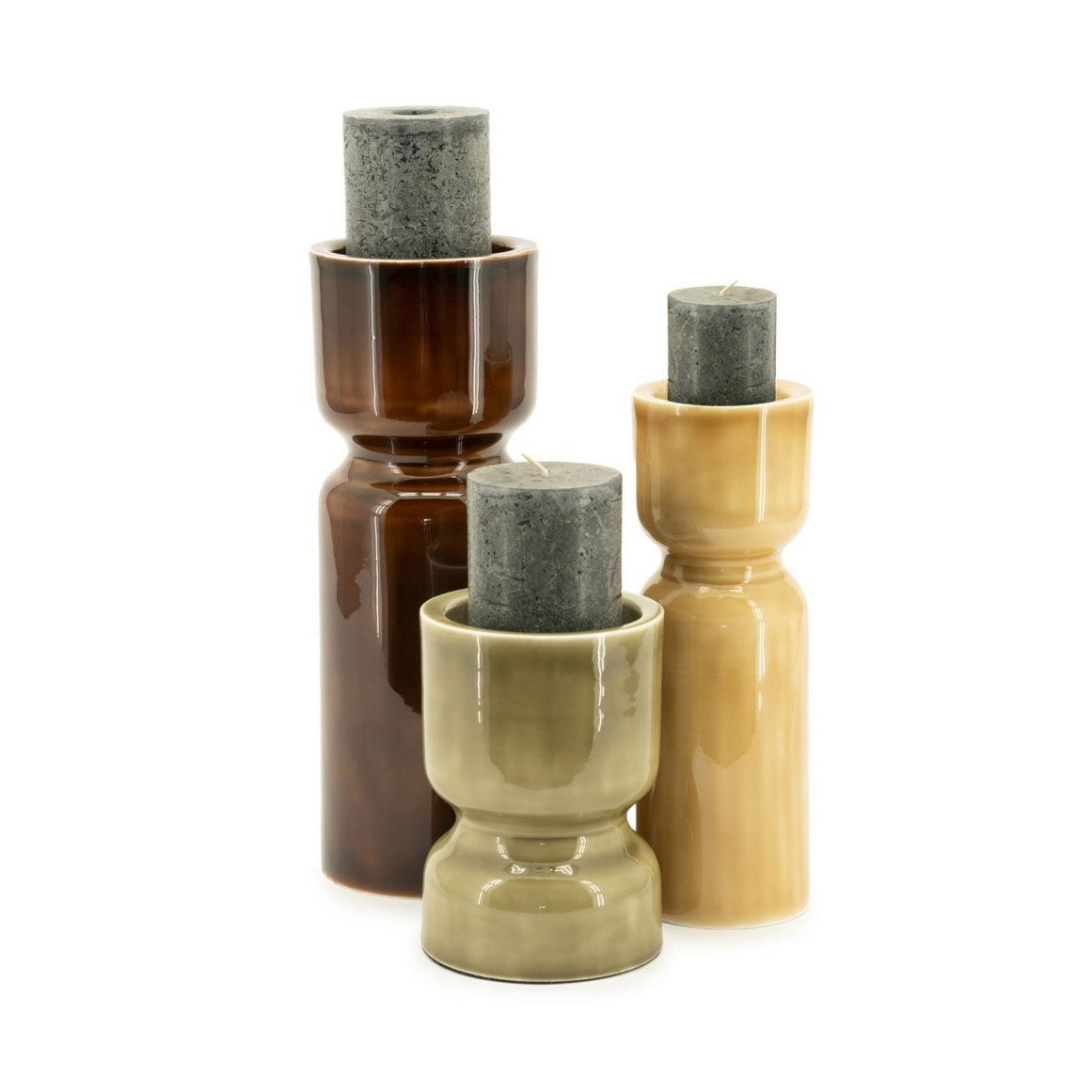 A Roan egy három darabból álló gyertyatartó készlet, amely a visszafogott eleganciát és a mai modern trendeket ötvözi. Sötétbarna, olajzöld és mustársárga színei tökéletesen illeszkednek mind egymáshoz, mind a kortárs stílusban dekorált otthonokhoz. Fémből készült szerkezete fényes glazúr réteggel van ellátva.