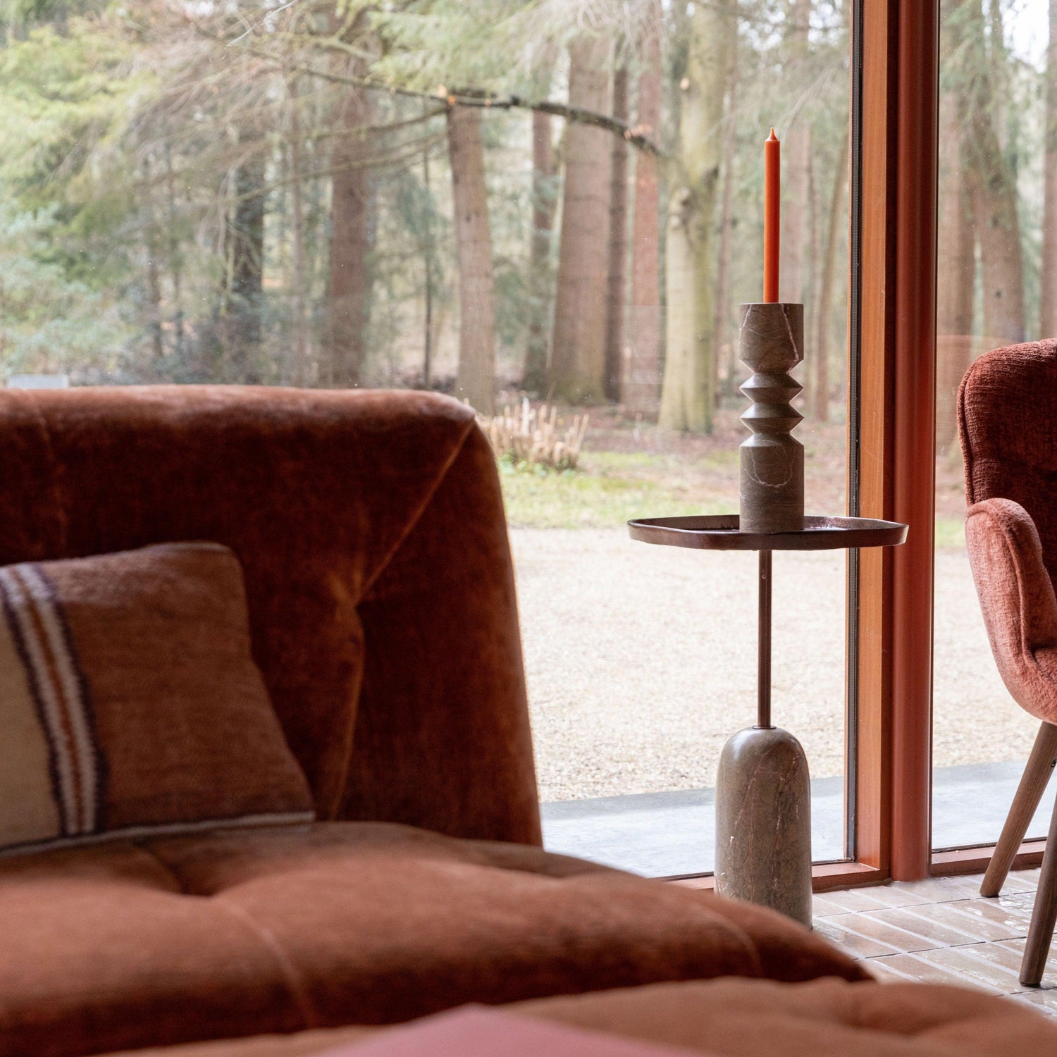 A Dutchbone Satpura gyertyataró az az alapvető elem, amely sajátossá teszi belső terét. Mivel barna márványból készült, természetesen meleg megjelenésű, időnként apró hibákkal, amelyek tökéletesen tökéletlen megjelenést kölcsönöznek. Ennek eredményeként a kiegészítők karakteressé varázsolják a helyiséget, amelyben elhelyezik őket. Sőt, a darabok kombinálhatók egymással, például egy hangulatos olvasósarokban, kényelmes fotellel és könyvespolccal.