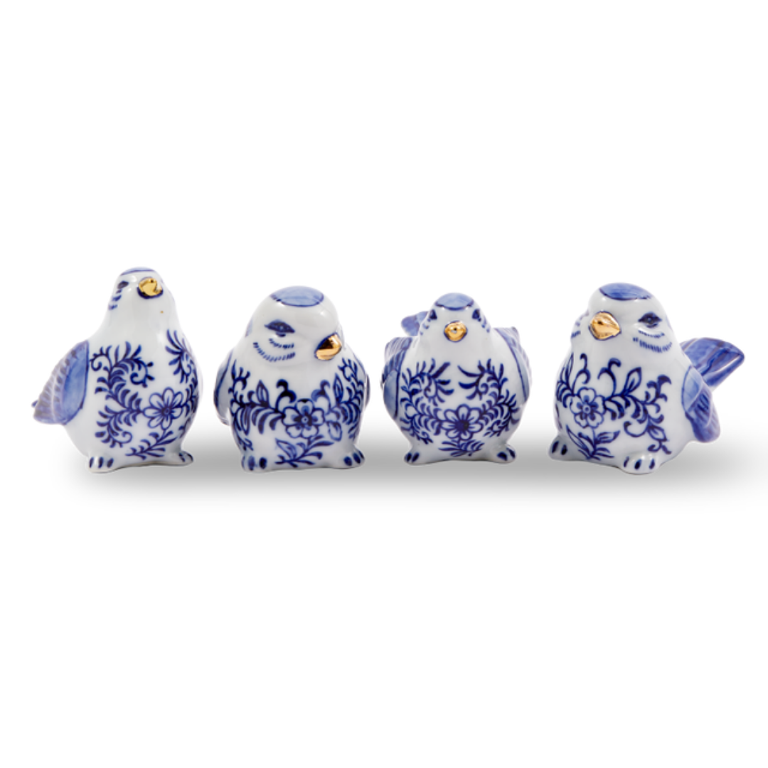 Ismerd meg elragadó új verebeinket, mindegyiket kézzel festették csillogó arany ékezettel. A Blue Bird Family finom porcelánból készült szeszélyes kis madarak összessége, amelyek készen állnak arra, hogy örömet és játékos szellemet vigyenek otthonába. Tökéletes polcon ülve, vagy színfoltok hozzáadásához a dekorációhoz. A szettben négy darab található.