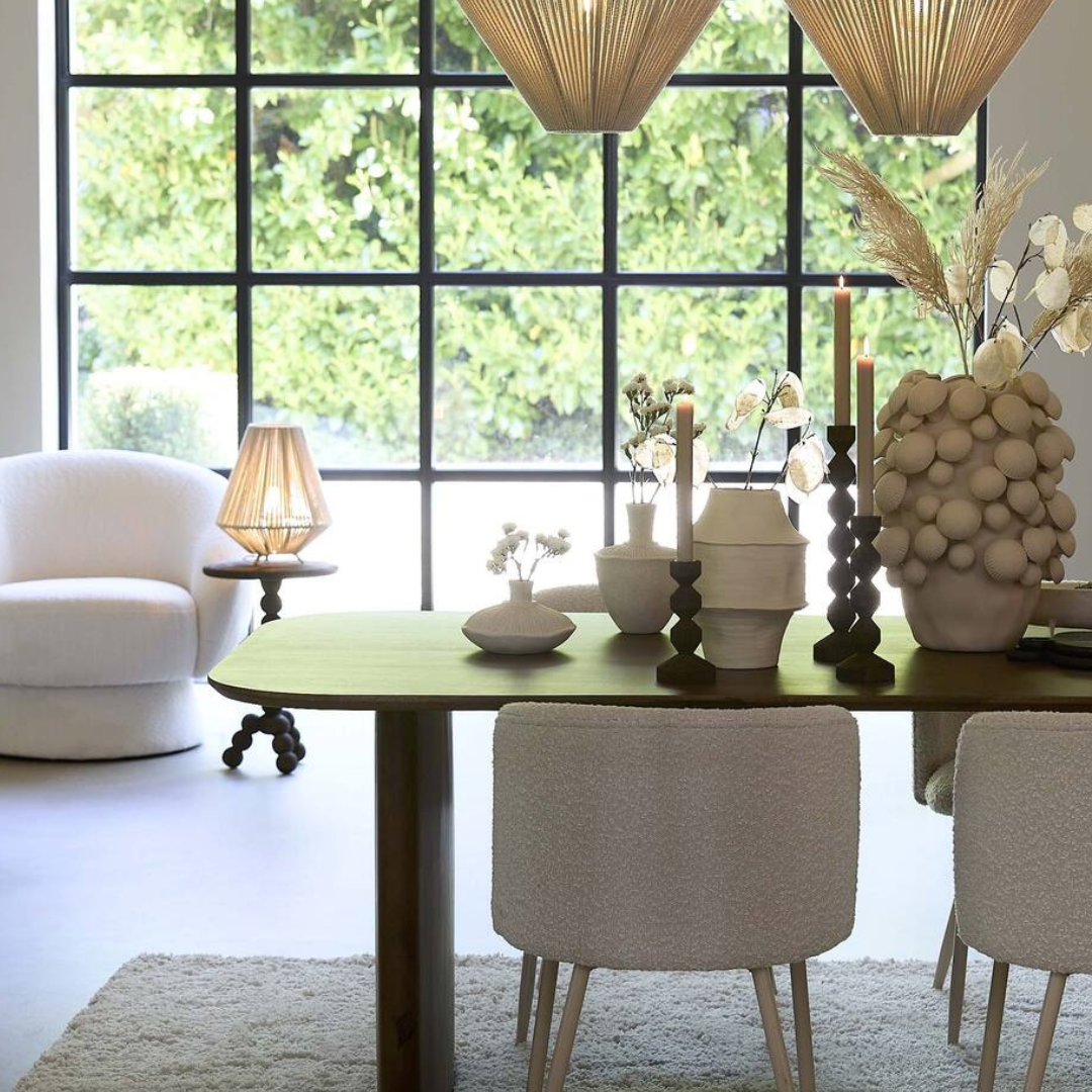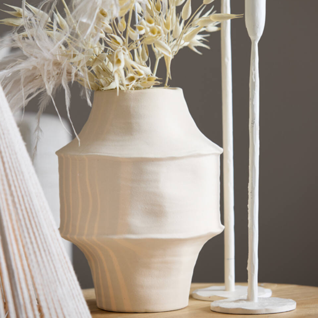 A Corsico váza kerámiából készül, dekoratív és organikus formával rendelkezik. Letisztult színben pompázik, két méretben elérhető, ami rendkívül könnyedén beilleszthetővé teszi, de karakteres megjelenése mégis figyelmet követel magának. Bézs színe tökéletesen kiemeli a benne elhelyezett virágcsokrot.