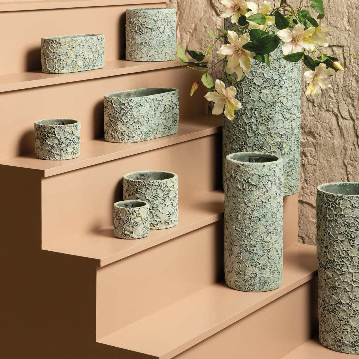 A PTMD gyártó Darrel virágtartója önmagában is egy gyönyörű dekorációs elem, amit a belehelyezett virágok vagy növények tovább fokozhatnak. Elegáns megjelenését a durva felületű világoskék színének, és letisztult henger alakjának köszönheti. A beltéren használható kaspó háromféle méretben érhető el.