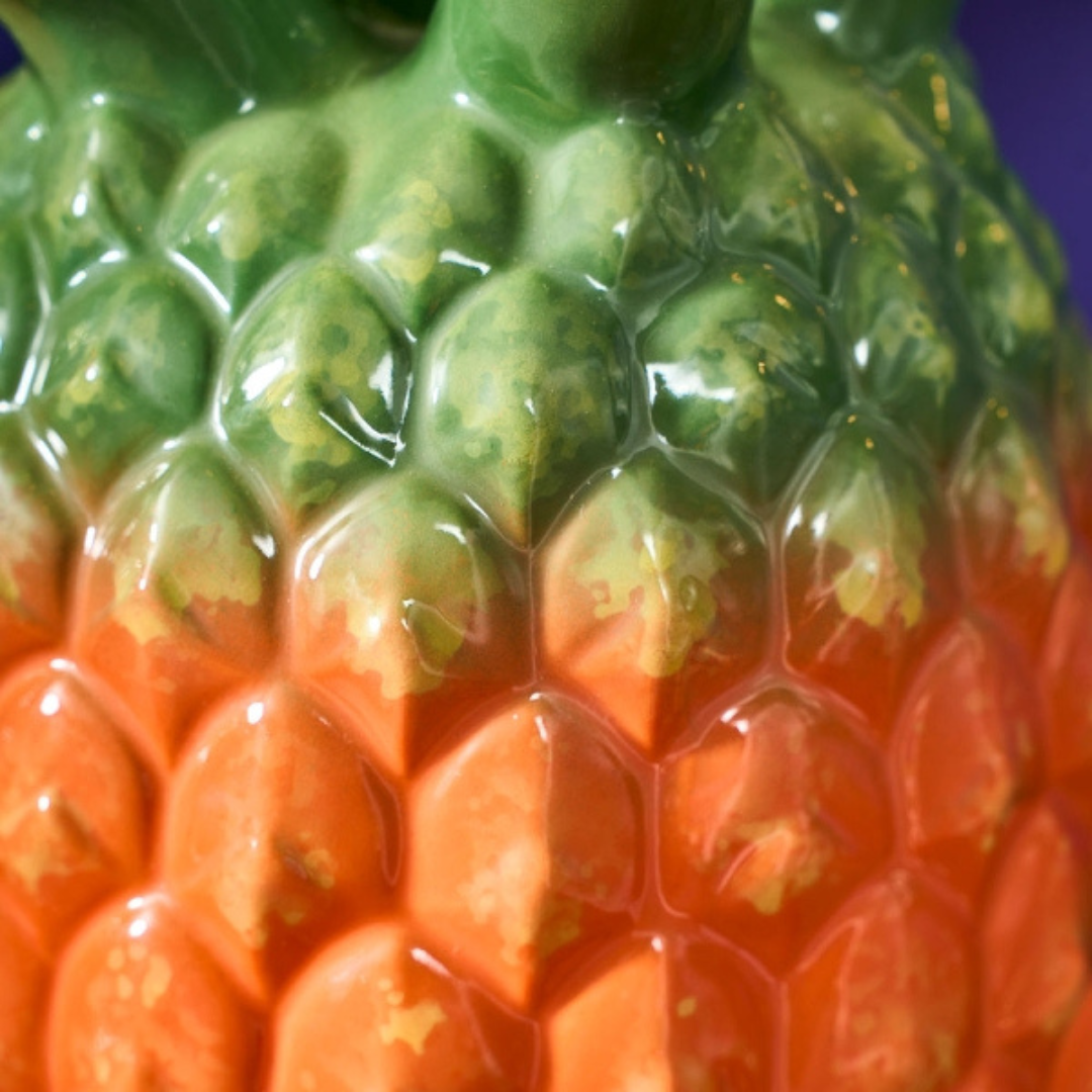 A Funky Pineapple váza egy látványos és dekoratív kiegészítő, mely garantáltan feldobja a teret. Élénk színei miatt gyönyörűen kiemeli a benne elhelyezett virágok vagy növények szépségét. Különlegessége, hogy több nyílással rendelkezik, ezért egyedi elrendezéseket tesz lehetővé. Tartós, mázas anyagának köszönhetően kültéri és beltéri használatra is alkalmas. A Funky Pineapple váza háromféle méretben és színkombinációban kapható.
