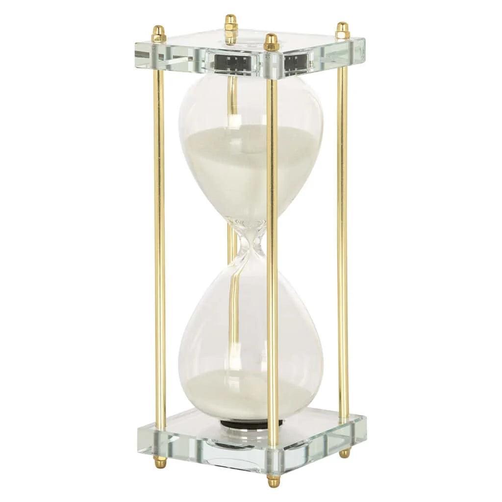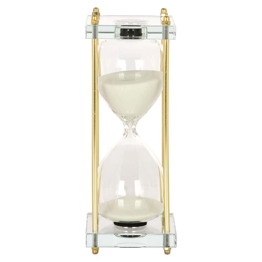 A Gigi homokóra egy elegáns és letisztult megjelenésű termék, mely harmónikus színekből áll. Üvegből, és arany színű fémből készült, amik tartós és esztétikus anyagok, így hosszú távon is élvezheted a termék szépségét és funkcionalitását. A homokóra méretei ideálisak, hogy könnyen elférjen egy asztalon vagy polcon, és bármilyen enteriőrbe tökéletesen illeszkedjen.