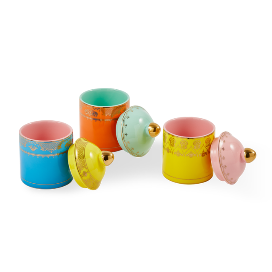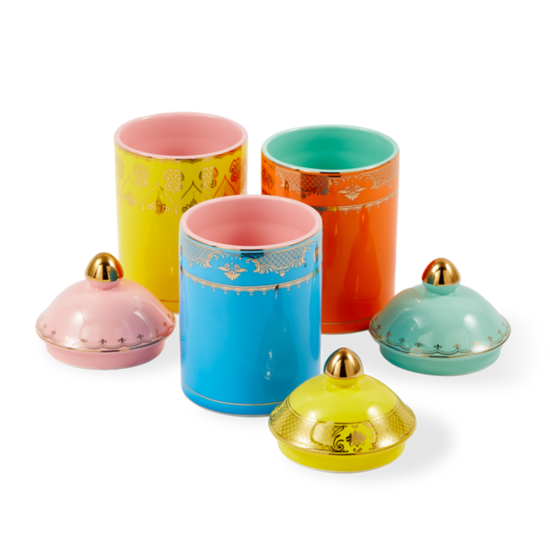 A Grandpa mázas porcelán tárolóedény, háromféle színkombinációban és arany díszítéssel készült. Összhatása elegáns és látványos, így bármely szoba dísze lehet. Ideális kisebb tárgyak, édességek vagy alapvető élelmiszerek tárolására is. Porcelán anyaga tartós, és könnyen tisztán tartható, ezért hosszú ideig élvezheted szépségét, és funkcionalitását is. Két különböző méretben kapható, így variálhatod is őket.