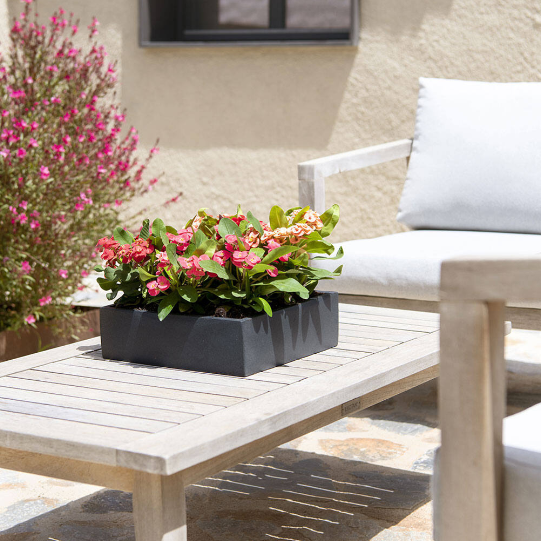 A Jack kő virágtartó egy stílusos és modern dekorációs darab, amely tökéletes választás lehet otthonodba, vagy külső helyszínekre is. A virágtartó lapos, és szögletes kialakítása, valamint elegáns fekete vagy világosszürke színe miatt könnyedén illeszkedik bármilyen környezetbe. Három különböző méretben kapható, így variálhatod is őket, hogy sajátos elrendezéseket alkothass. A kaspó alja nincs alsó kifolyással ellátva, ezáltal nem fagyálló.