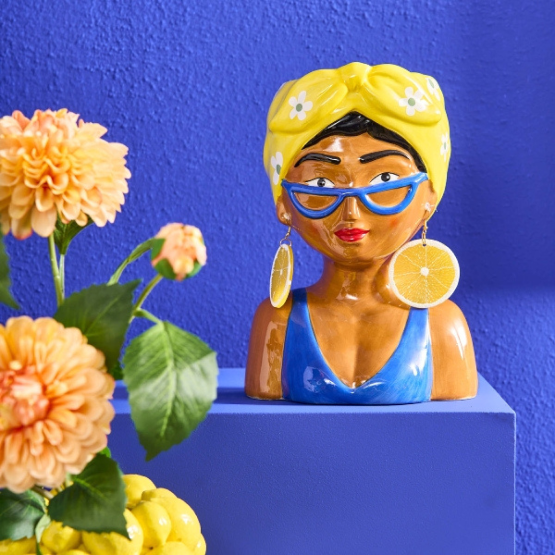 A Werner Voss gyártó Lotte vázája egy igazán különleges termék, mely önmagában dekorációként is használható. A női torzó élénk és színes megjelenéssel rendelkezik, melyet kiegészíthetsz a Lotti, és a Lotta vázákkal is. Mázas kő anyaga tartós, és könnyen tisztántartható.
