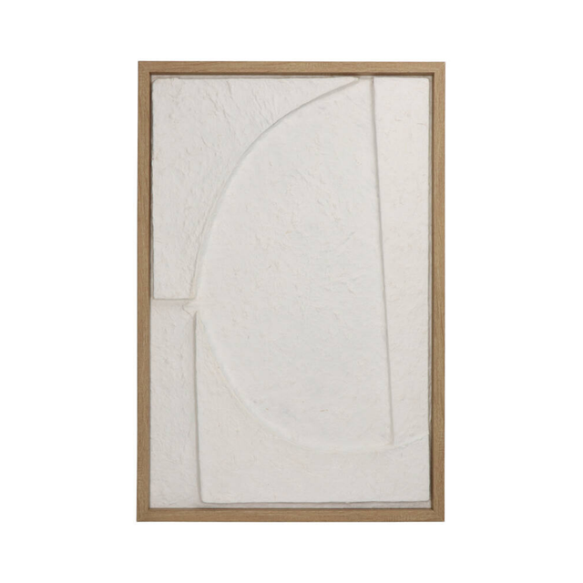 A 40x60 cm-es, papírból készült Natural fali dekoráció, egy minimalista műalkotás, mely törtfehér színével, és minimalista, geometrikus mintázatával könnyedén illeszkedik otthoni, irodai, és közösségi terekbe is. Vékony, natúr fa kerete kiemeli a térben, ugyanakkor hozzájárul a természetes megjelenéshez.