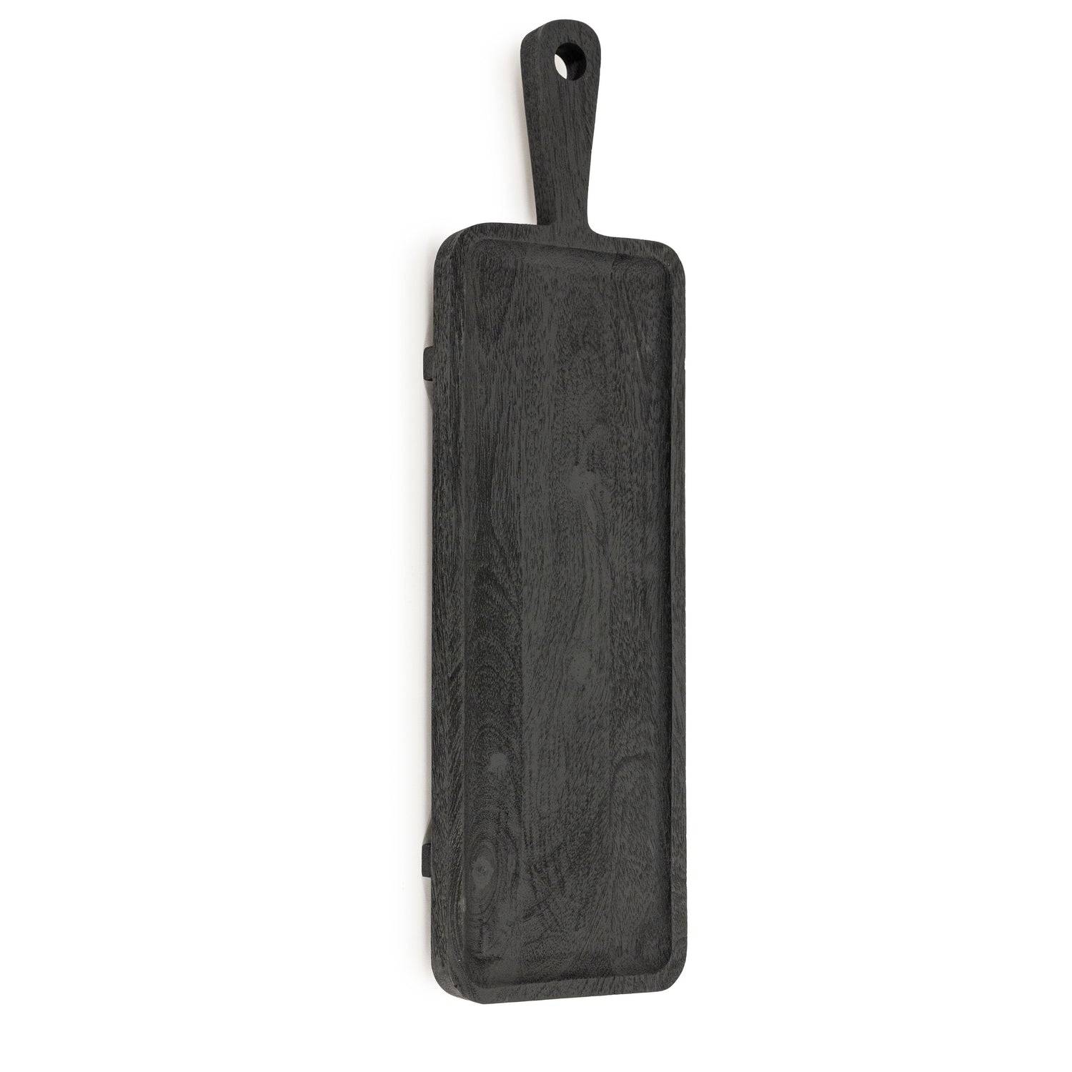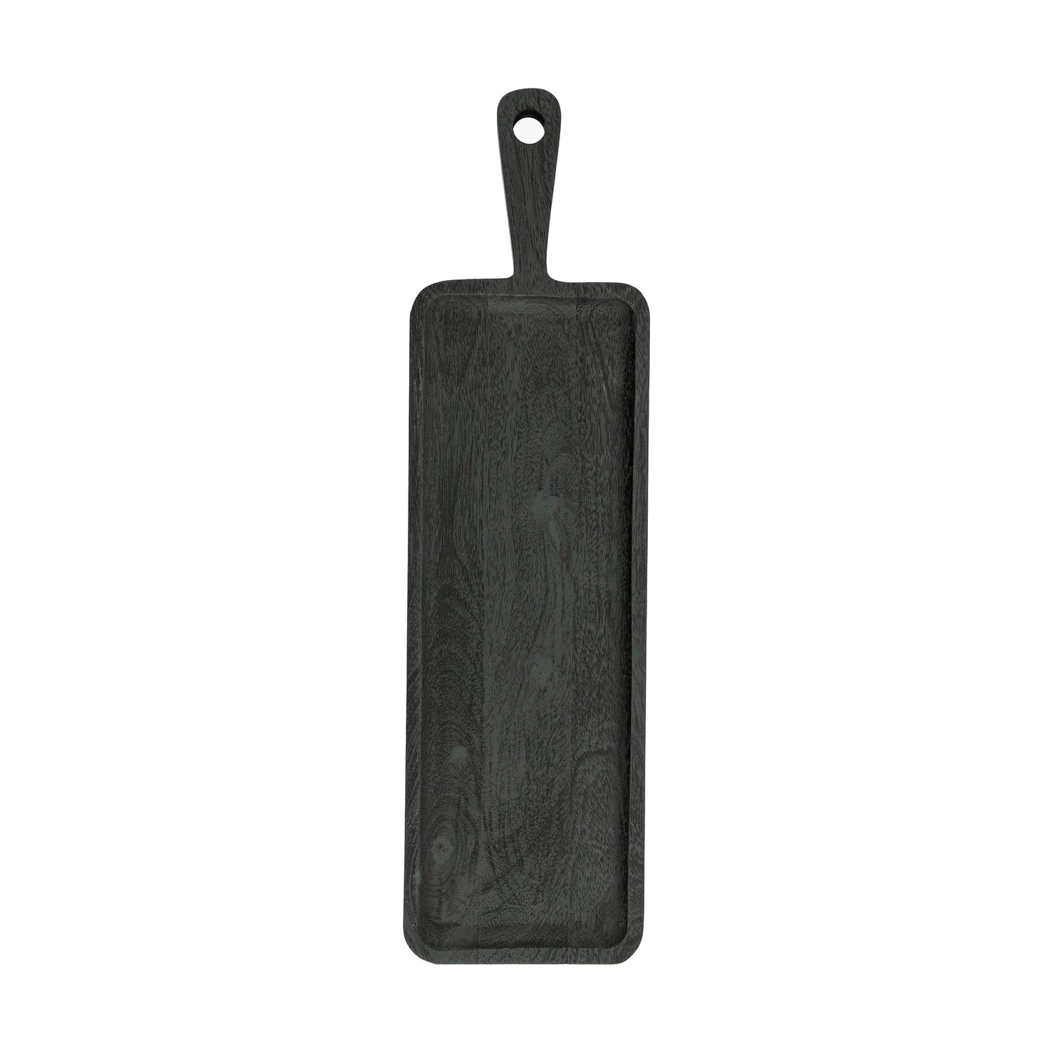 A feketére festett, mangófából készült Plancha tálalódeszka egy praktikus kiegészítő, mely sokoldalú felhasználást tesz lehetővé. A hosszúkás kialakítása elegáns tálalást biztosít, míg a lyukkal ellátott fogantyúja miatt könnyen felakasztható a falra. Sötétbarna színben, nagyobb méretben is kapható.
