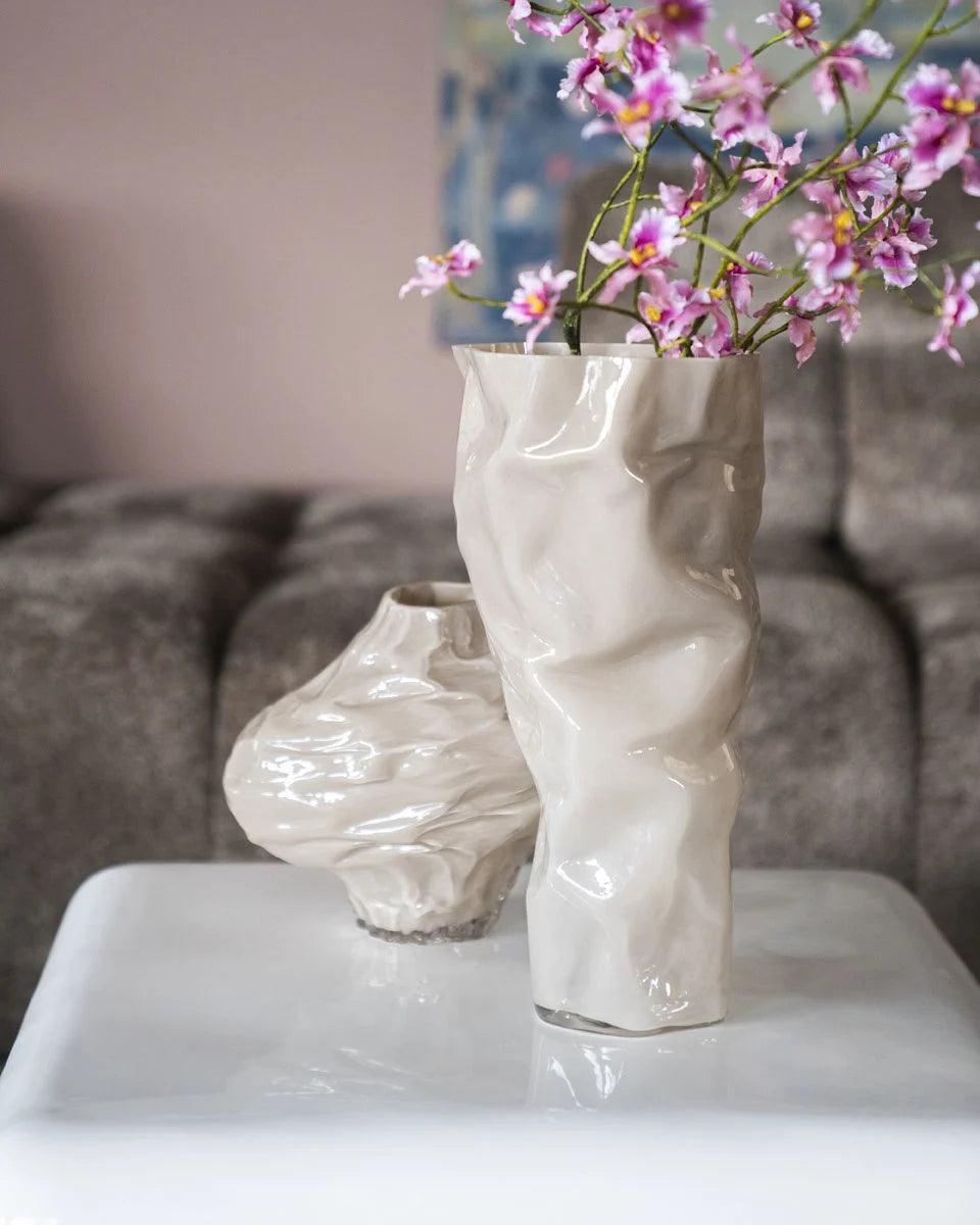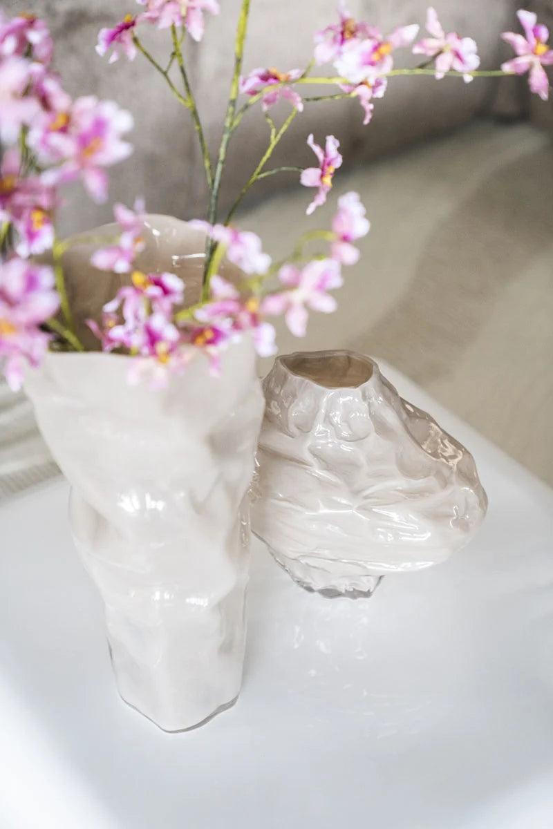 A Rias váza egy igazán különleges darab, amelynek megjelenése a gyűrött papír textúrájára emlékeztet, így egyedi és modern hangulatot kölcsönöz bármely térnek. A váza formatervezése a művészi kreativitást és a funkcionális esztétikát ötvözi, így nem csupán virágok tárolására alkalmas, hanem önálló dekorációs elemként is megállja a helyét. A Rias váza sötétbarna és bézs színekben érhető el, amelyek könnyedén illeszkednek a különböző enteriőr stílusokhoz, legyen szó minimalista, skandináv, vagy akár klasszikus dekorációról.