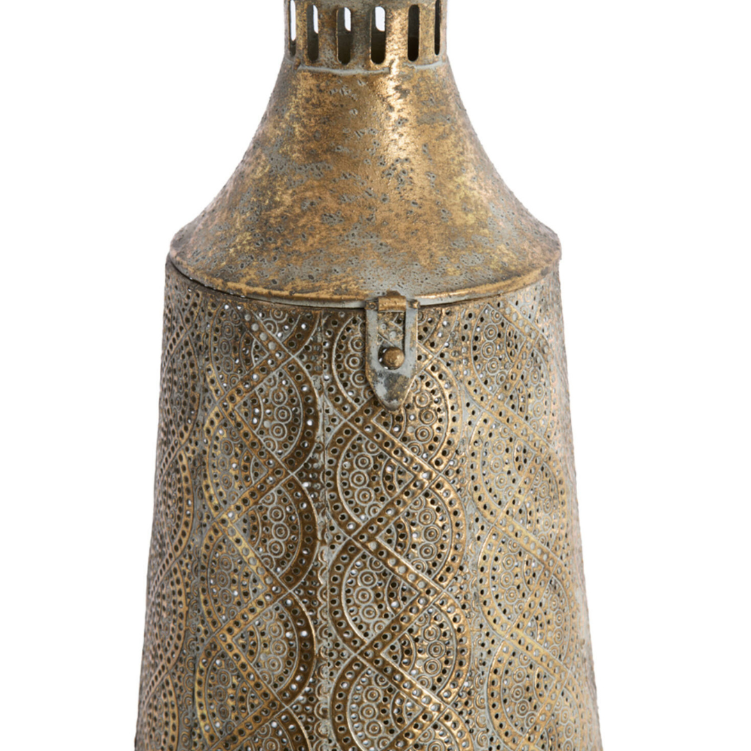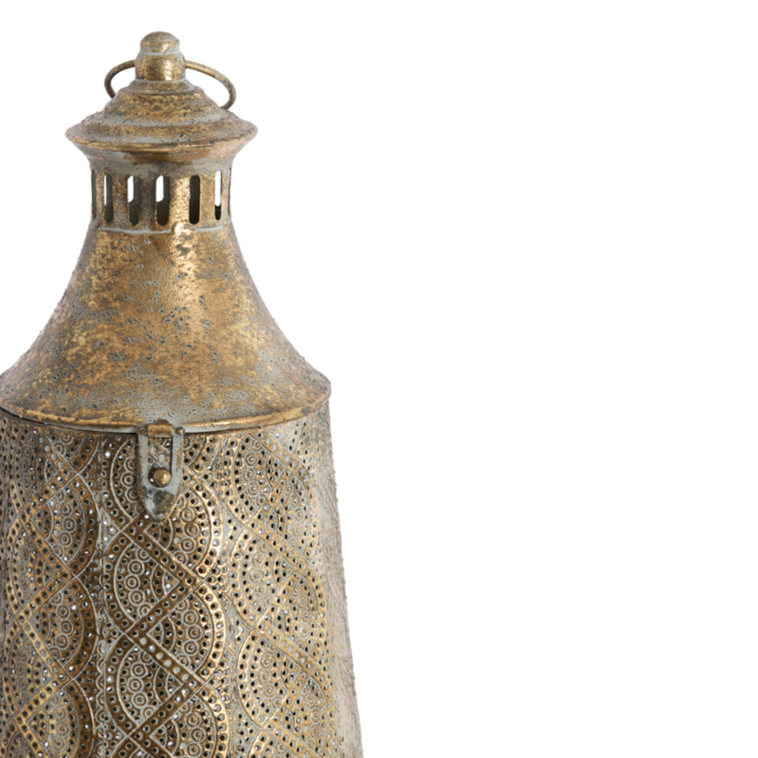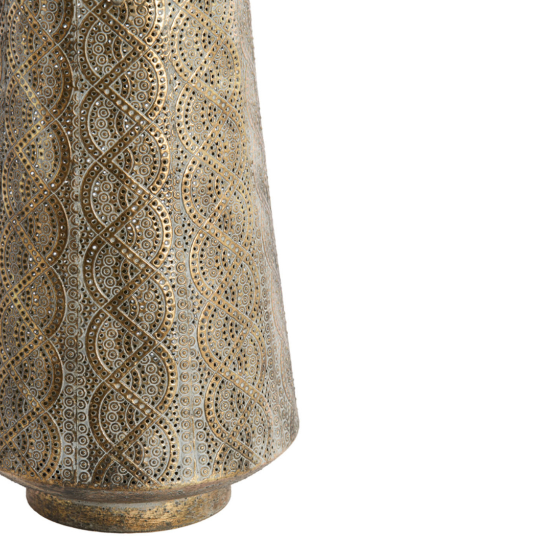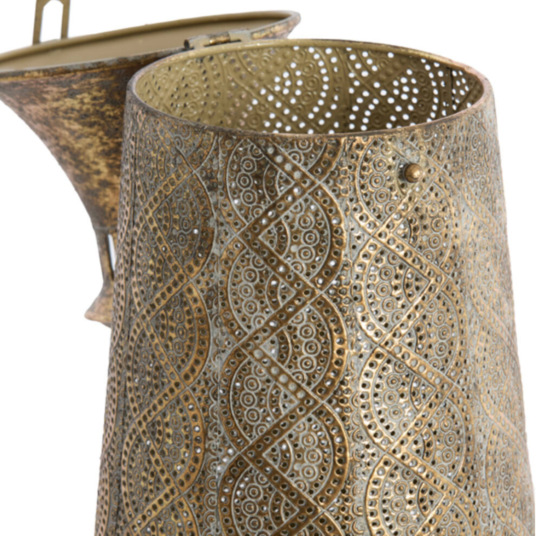 A Sanya gyertyatartó vintage arany színnel rendelkezik, amelynek lyuggatott felülete meghitt fényt kölcsönöz neki. Finom csillogása és gazdag árnyalatai mélységet és karaktert biztosítanak, így ez egy feltűnő darab, amely időtálló vonzerővel emel ki minden elegáns belső teret.