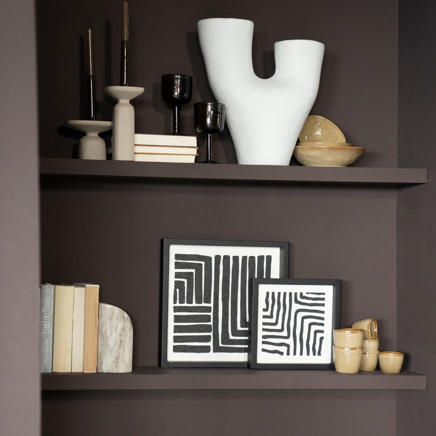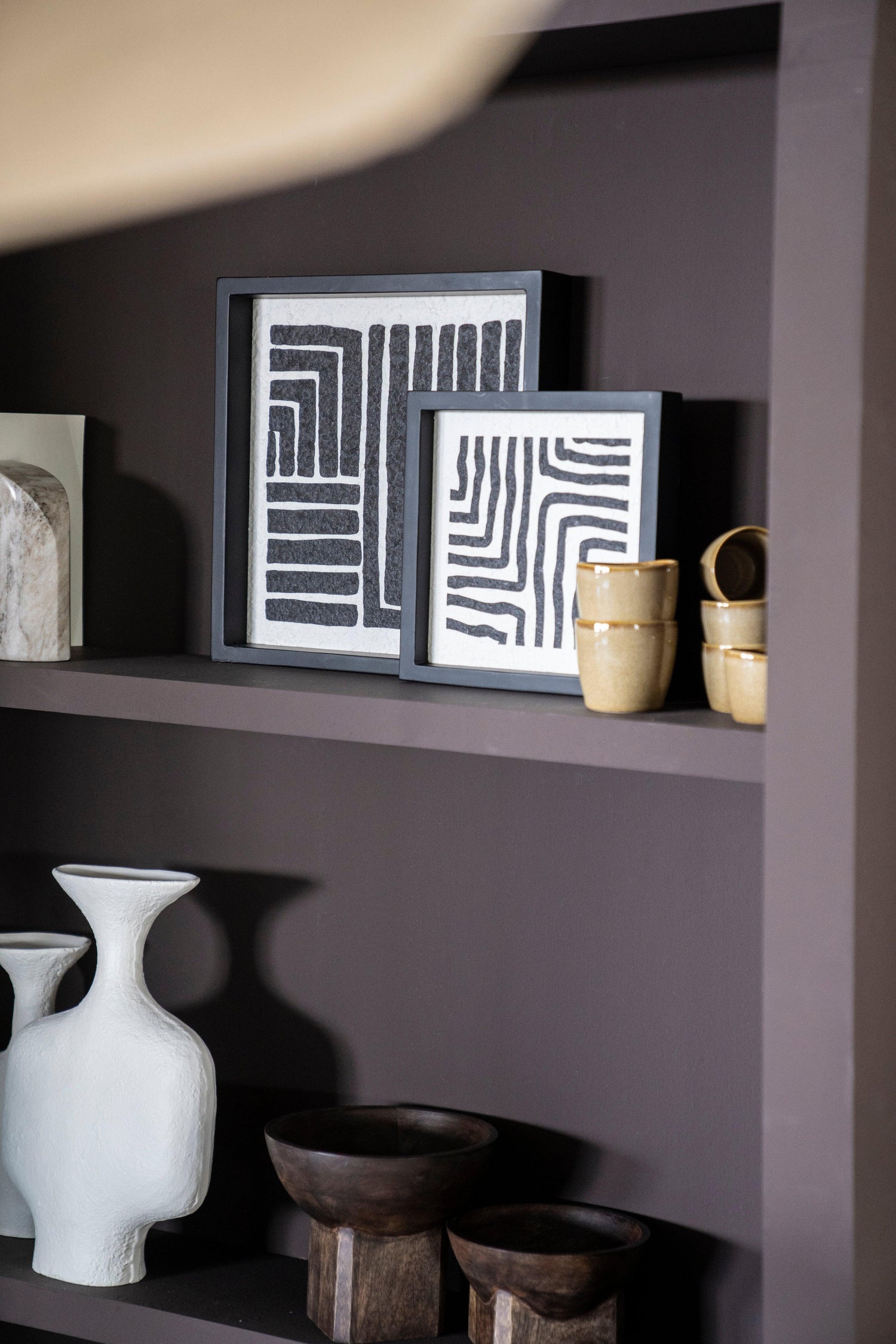 A vastag, fekete kerettel rendelkező Triq falikép szett két darab, különböző méretű terméket tartalmaz. A nagyobb vastag, míg a kisebb vékony vonalakat ábrázol. A fekete fehér, labirintus szerű minta dinamikus, és figyelemfelkeltő hatást kölcsönöz, így kiváló választás lehet otthoni, vagy irodai bemutatásra is.