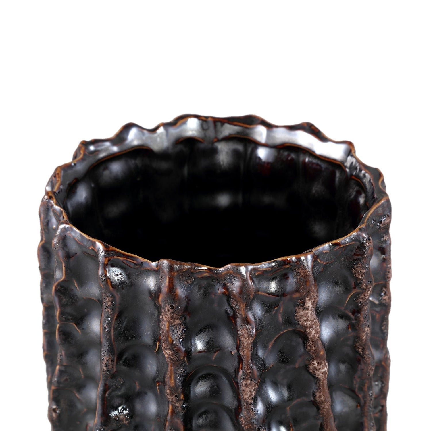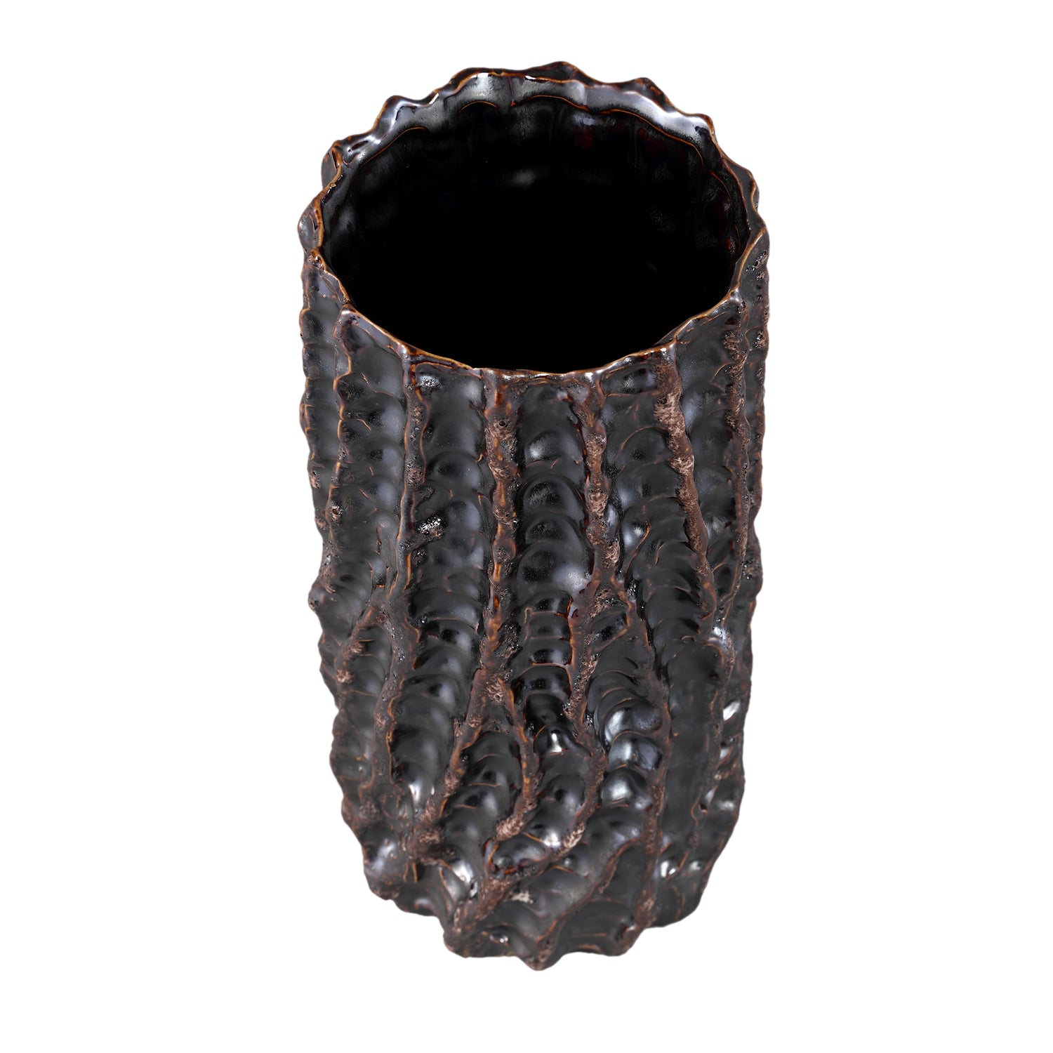 A kül-, és beltéren is használható Vikton virágtartó egy klasszikus hangulatot idéző dekoráció, mely sötétbarna, egyenetlen felületével, és antikolt bevonatával vintage hatást kölcsönöz. A kézzel gyártott termék minden darabja egyedi megjelenést biztosít. Nem vízálló.