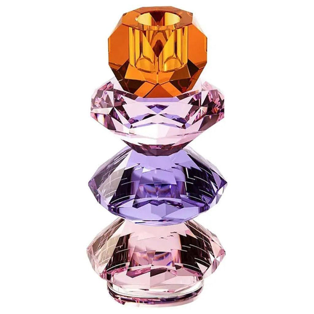 A Yalena gyertyatartó, egy élénk színekkel és elegáns megjelenéssel rendelkező darab. A szögletes, drágakövekre jellemző metszéssel készült üveg felületen csodásan oszlik el a fény, így gyertya nélkül is szép dekoráció lehet. Romantikus vacsorákhoz, és különleges alkalmakra is használható, hogy feldobd vele az esemény hangulatát. Kisebb méretben is elérhető.