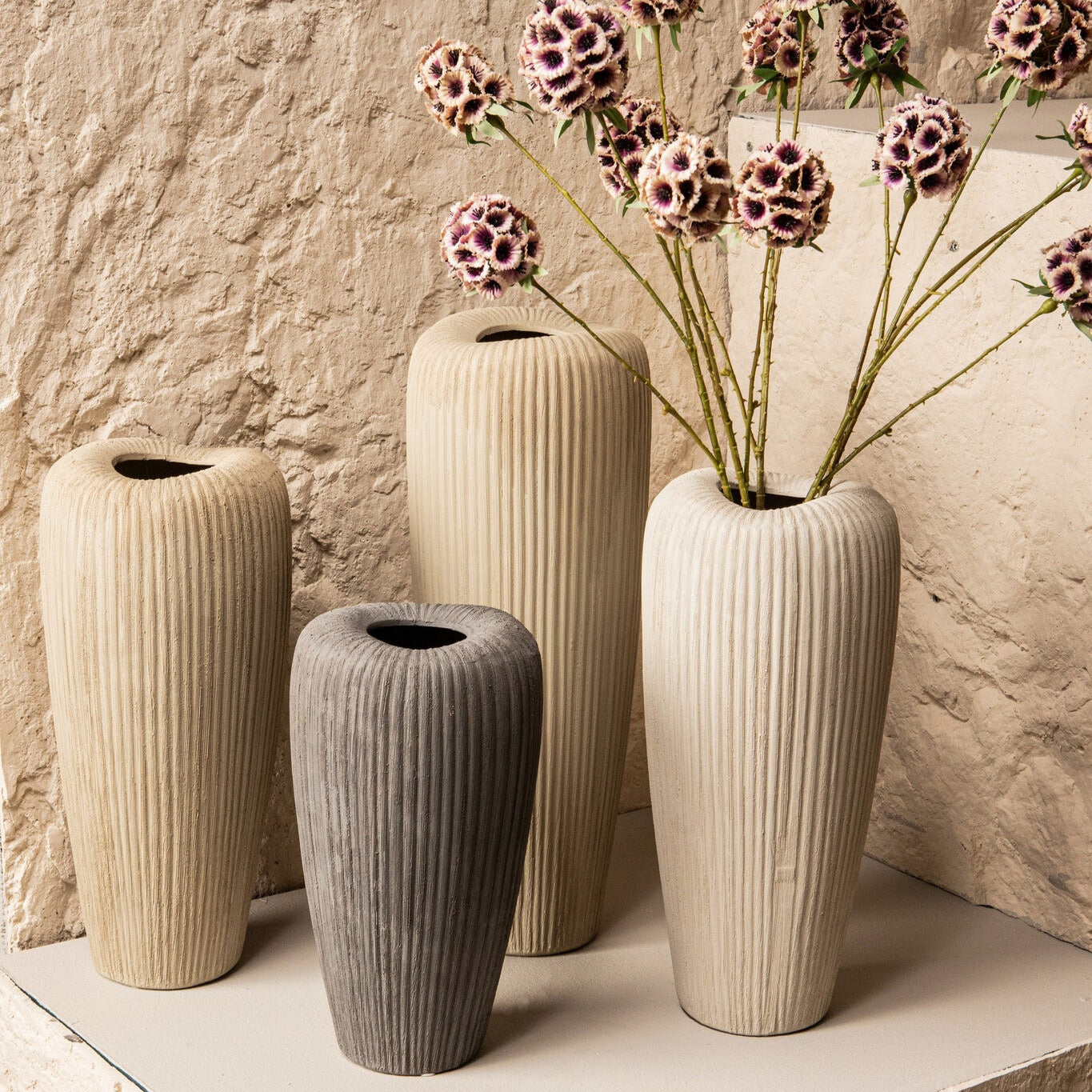 A Zinet virágtartó elegáns kialakításával, és függőleges bordás mintázatával igazán stílusos és karakteres megjelenést biztosít. A beltéri használatra javasolt kaspó kétféle méretben kapható, így egyedi elrendezéseket alkothatsz velük. A Zinet világosbarna, sötétszürke, és bézs színekben érhető el.