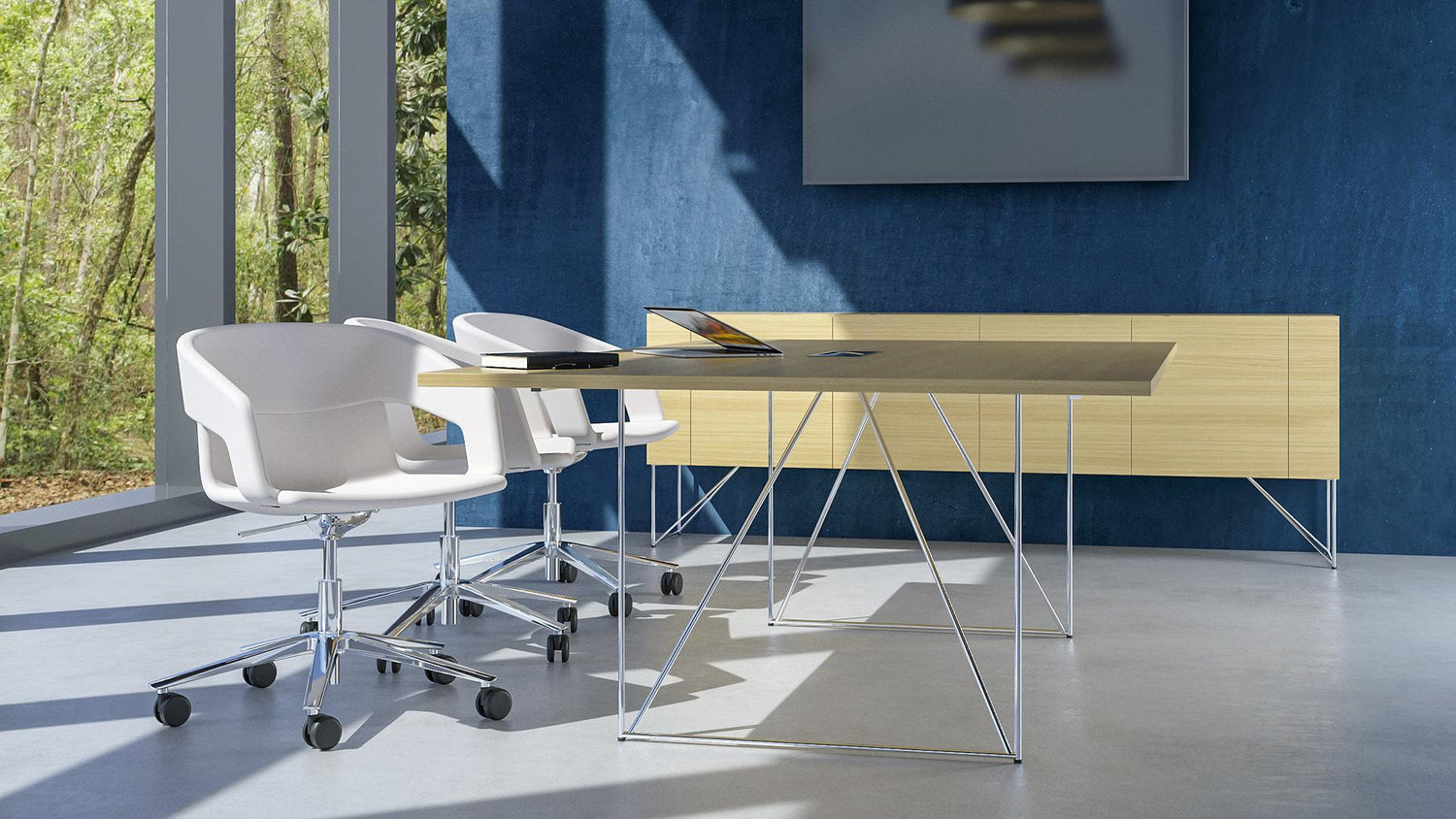 Az AIR asztalok kivételes jellemzője a vékony fém lábak, amelyek a könnyedség érzetét közvetítik, ugyanakkor biztosítják a tartósságot és stabilitást. Minimalista tervek, átgondolt megoldások, különböző textúrák és színek kombinációi – mindez nagyobb kreatív szabadságot biztosít az irodatereket tervező építészek számára. Az AIR tárgyalóasztalok egy hatfős csapat számára kialakított kerek asztallappal vagy nyolc fős téglalap alakú asztallappal rendelkeznek.