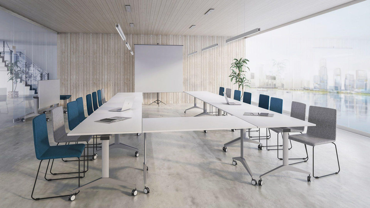A modern irodahelyiségek rugalmas megoldásokat igényelnek. A FLIP-TOP íróasztalnak van egy függőleges helyzetre felhajtható asztala, és görgőkkel rendelkezik. Ezzel nem csak helyet takaríthat meg, hanem könnyedén fel is készítheti az irodahelyiséget megbeszélésekre, konferenciákra, képzésekre vagy közös munkára. Rugalmasan alkalmazkodik az igényekhez.