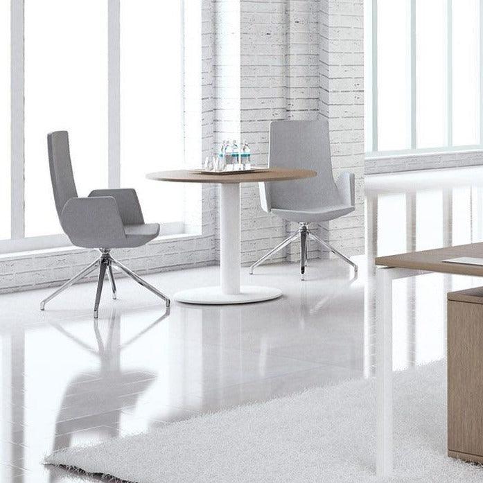 A kerek fém talpú FORUM dohányzóasztal ideális választás recepciókra, pihenésre vagy tárgyalóhelyiségekbe. A kerek asztallapok és talpak biztosítják a teljes asztalfelület hatékony kihasználását. Megkönnyíti a kommunikációt kollégáiddal és partnereiddel. A FORUM dohányzóasztalok klasszikus dizájnnal rendelkeznek, stílusosságot és eleganciát kölcsönöznek a térnek.