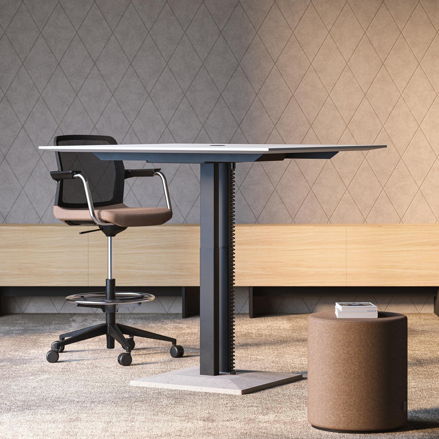 A JAZZ tárgyalóasztalok ideálisak különféle tárgyalásokhoz, mivel állítható magasságú vagy fix magasságú asztalként is kaphatók. Az állítható magasságú JAZZ tárgyalóasztal kialakítása egyedülálló abban, hogy az asztal talpa betonból készült. A középen, nem pedig az oldalakon elhelyezett lábakkal ellátott asztalok barátságos teret teremtenek az emberek találkozásához és kommunikációjához. Ez a JAZZ asztaltípus ideális rövid megbeszélésekhez, gyors ötletelésekhez vagy egyszerűen élvezetes kávészünetekhez.