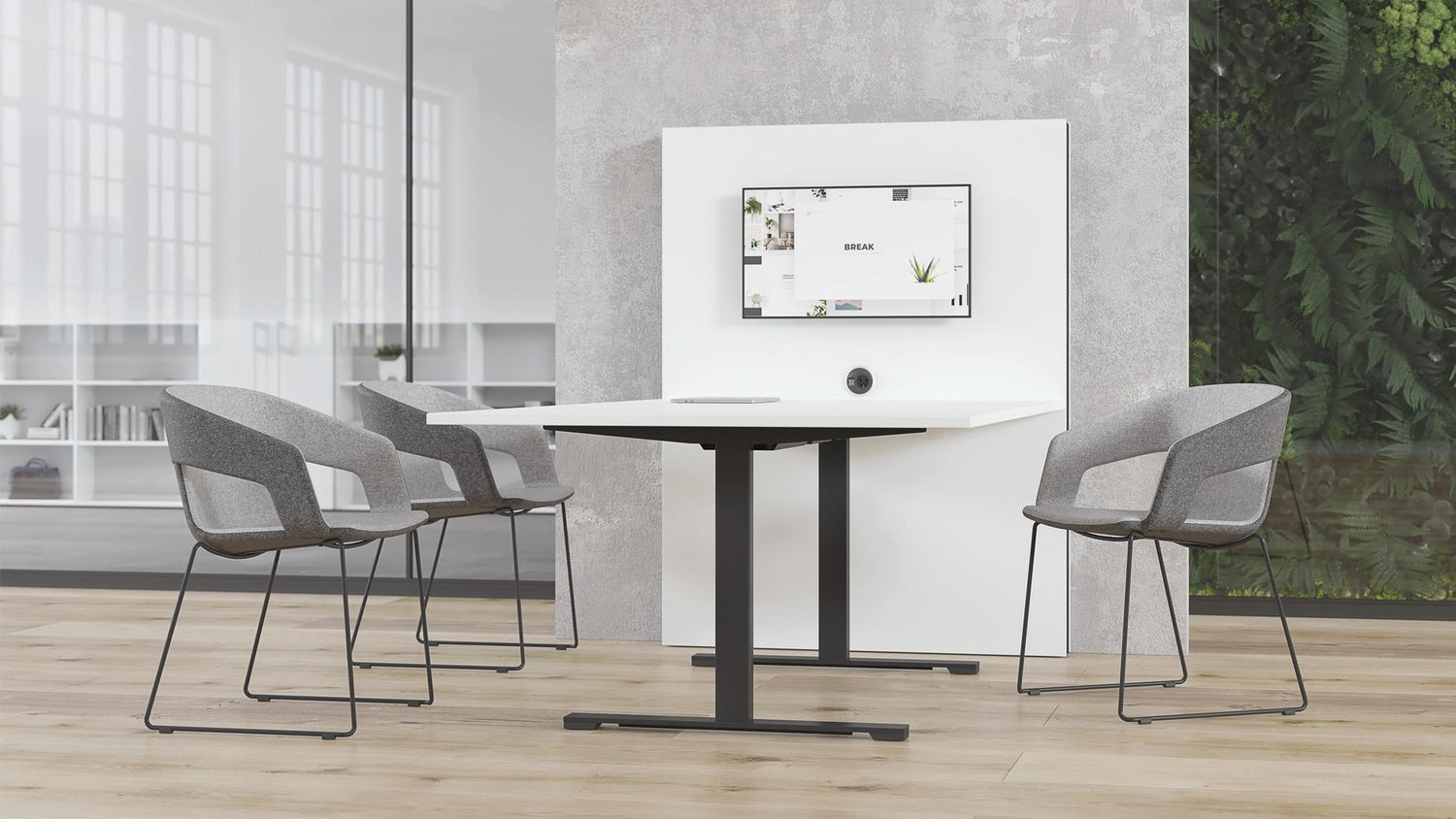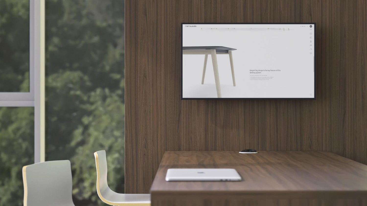 A MEDIA konferenciafal lehetővé teszi, hogy a mai technológiát integrálja a tárgyalóterekbe. Egyszerű módot kínál prezentációk bemutatására, valamint videokonferenciákon és találkozókon való részvételre. A konferenciafal különféle tárgyalóasztalokhoz vagy magas asztalokhoz rögzíthető.