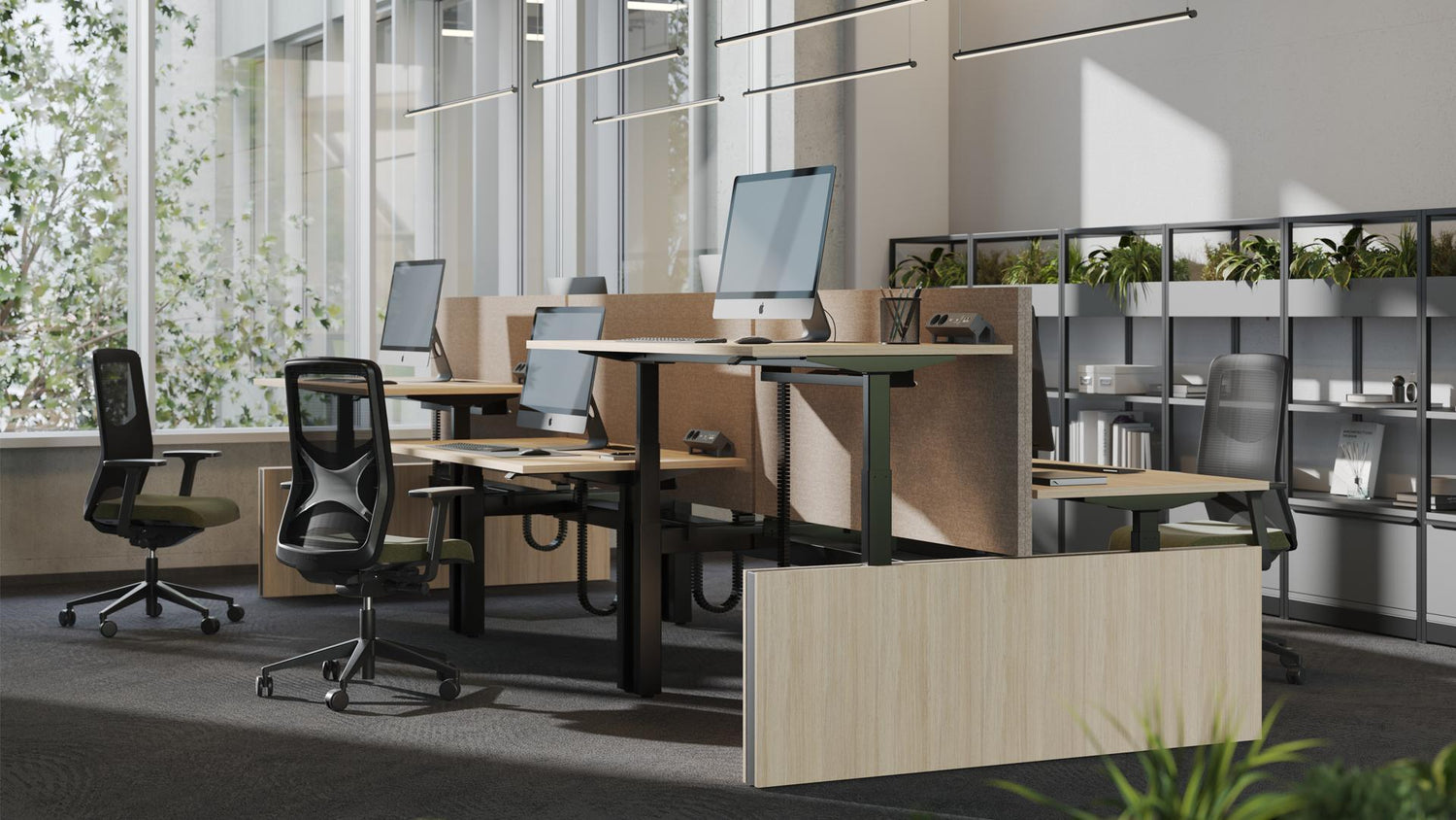 A MOTION lendületbe hoz! Elektromosan állítható magasságú íróasztalrendszer dinamikus munkastílushoz. A rendszeres testtartásváltás javítja a közérzetet és a koncentrációt, míg az ergonomikus és jól szervezett munkatér pozitív érzelmeket vált ki. A magasságot a vezérlőpanelen vagy az okostelefonos alkalmazáson keresztül állíthatod be. A LINAK alkalmazás segítségével jelzést kaphat arról, mikor időszerű változtatnod a munka közbeni pozíciódon.