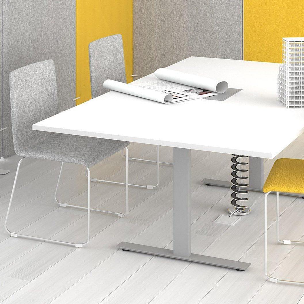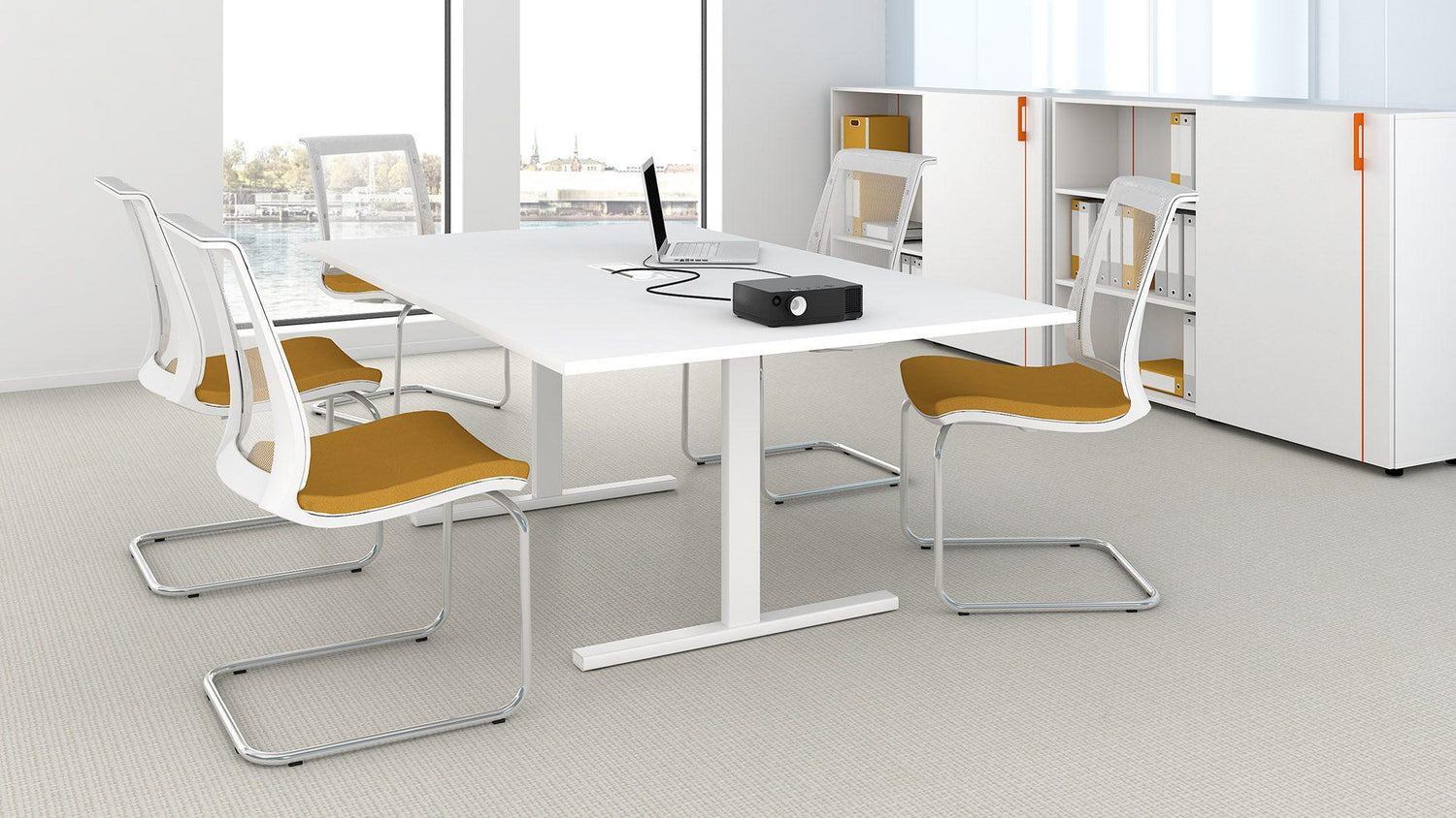 A letisztult és esztétikus kialakítású T-EASY tárgyalóasztalok ideálisak egy hat-nyolc fős csapat számára. A tartós felépítésű és T-alakú lábakkal rendelkező íróasztalok egyértelmű előnyt élveznek más típusú asztalokkal szemben: tágasabb helyet biztosítanak az íróasztal alatt és körül. A hatékony kábel- és vezetékkezelés érdekében beépített nyílások is vannak az asztalban.