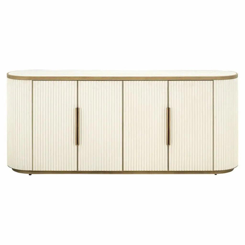 A Richmond gyártó Tivoli kollekciója, egy elegáns, és minimalista megjelenésű sorozat, mely fa, fém és fehér kerámia anyag felhasználásával készült. Antikolt arany színű fém részletek egészítik ki, ezzel luxus hatást kelt. Ez a 4 ajtós kabinet elegendő helyet biztosít ruhák, vagy más kiegészítők számára, hogy rendezett maradhasson otthonod, ugyanakkor lehetőséget ad dekorációk bemutatására is. Tartós, és minőségi anyagai garantálják a hosszú élettartamot.